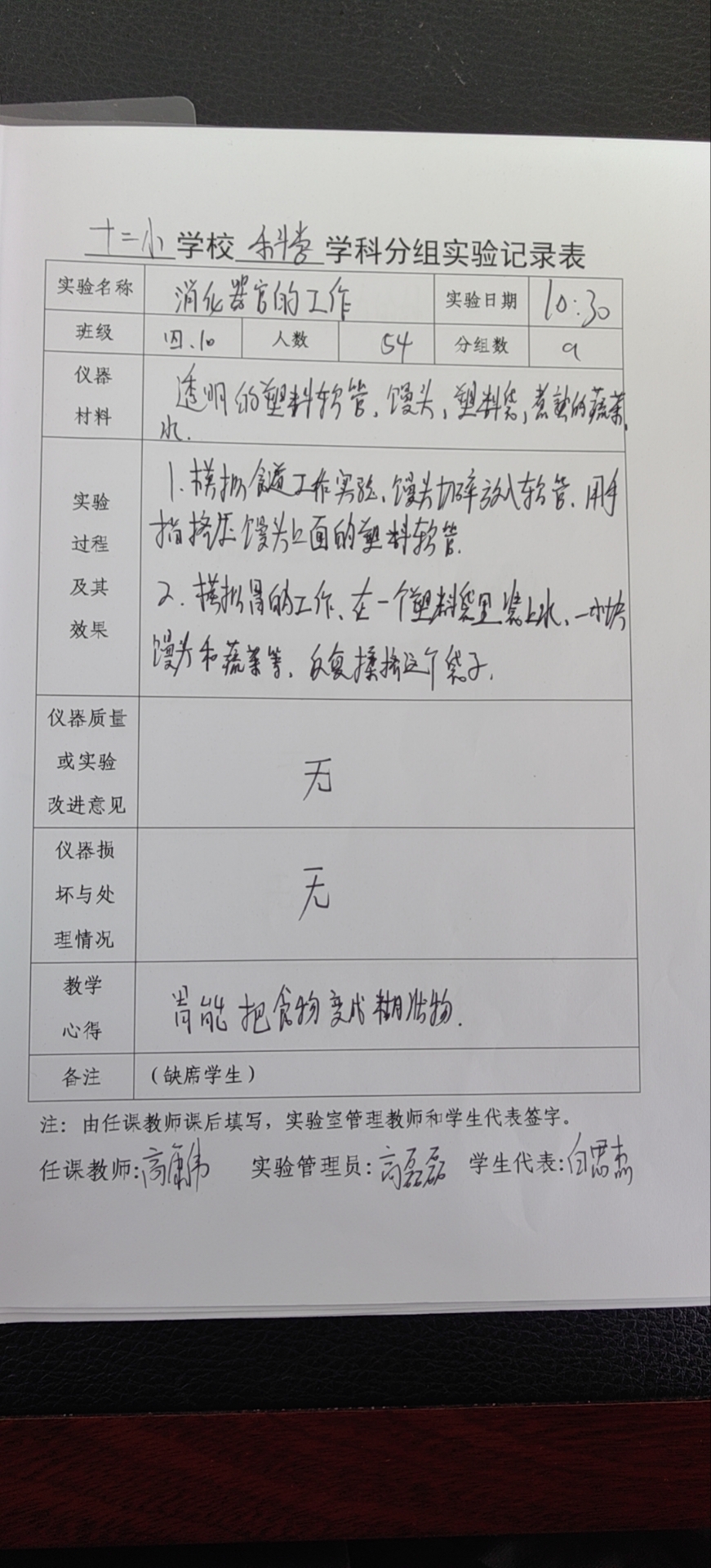 实验登记表
