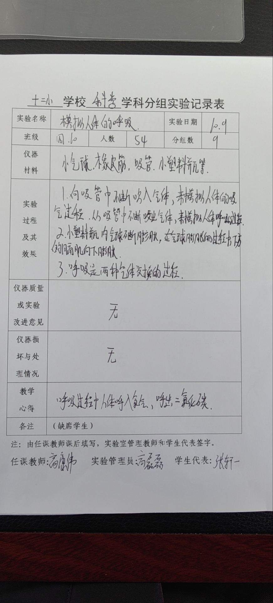 实验登记表