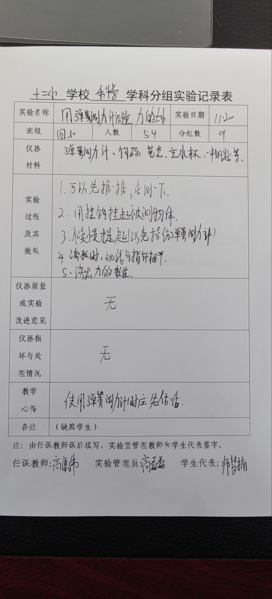 实验登记表