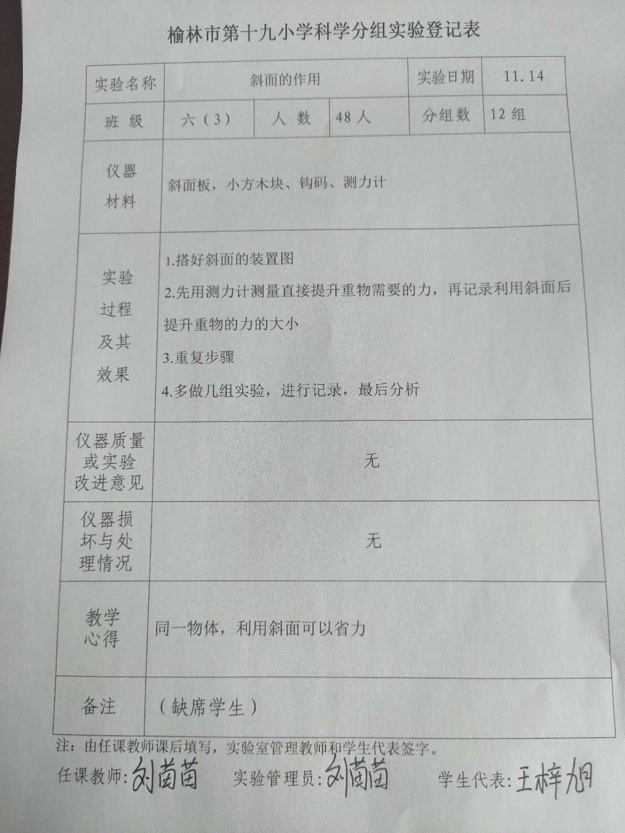 实验登记表