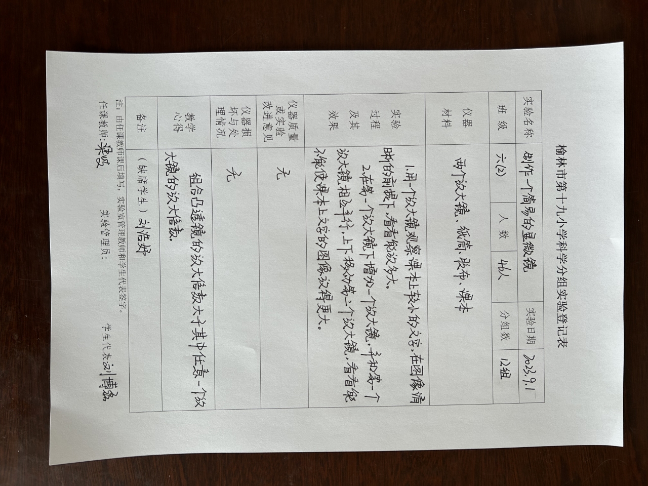 实验登记表
