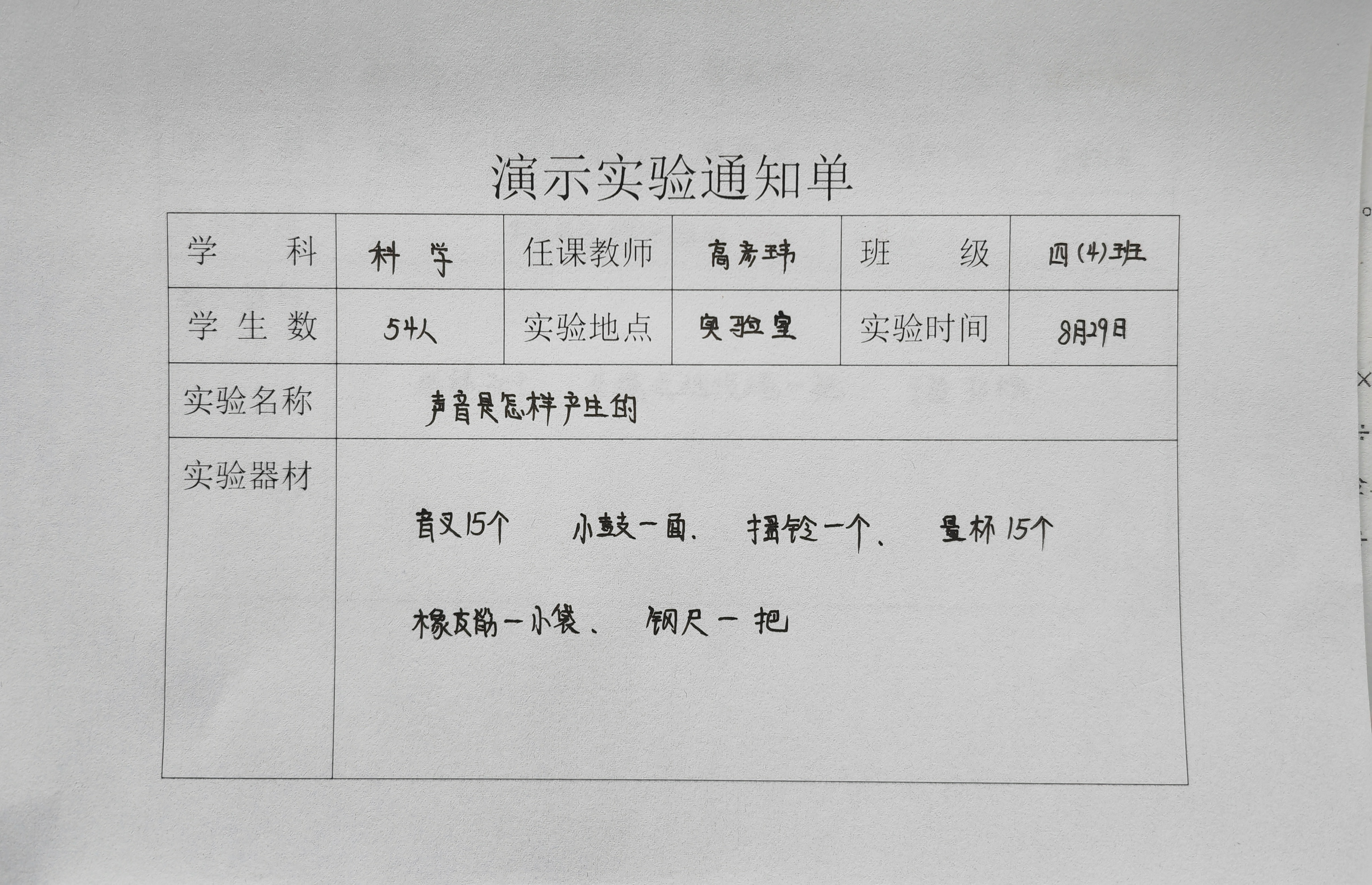实验登记表