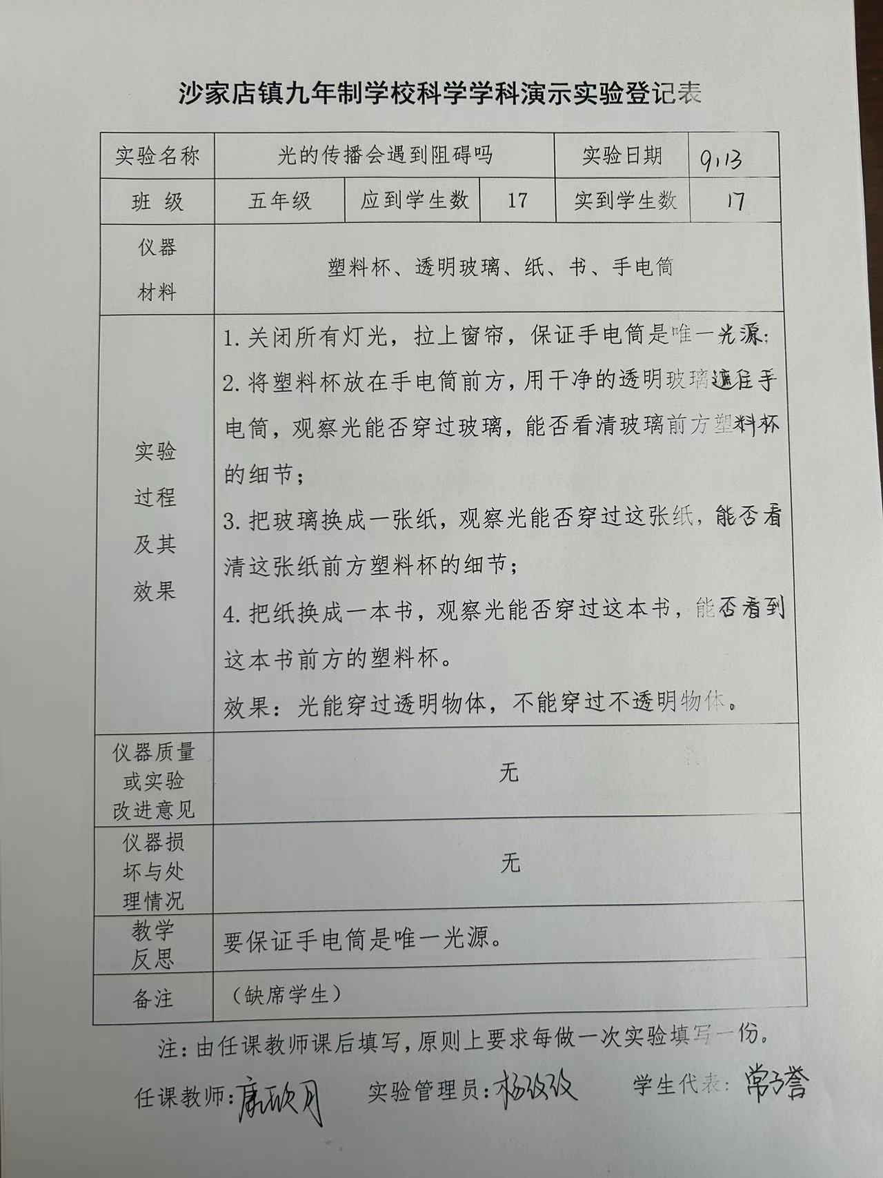 实验登记表