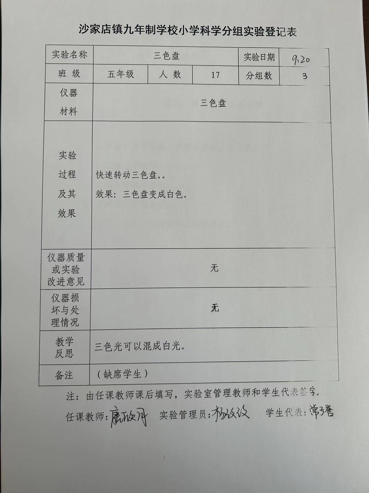 实验登记表