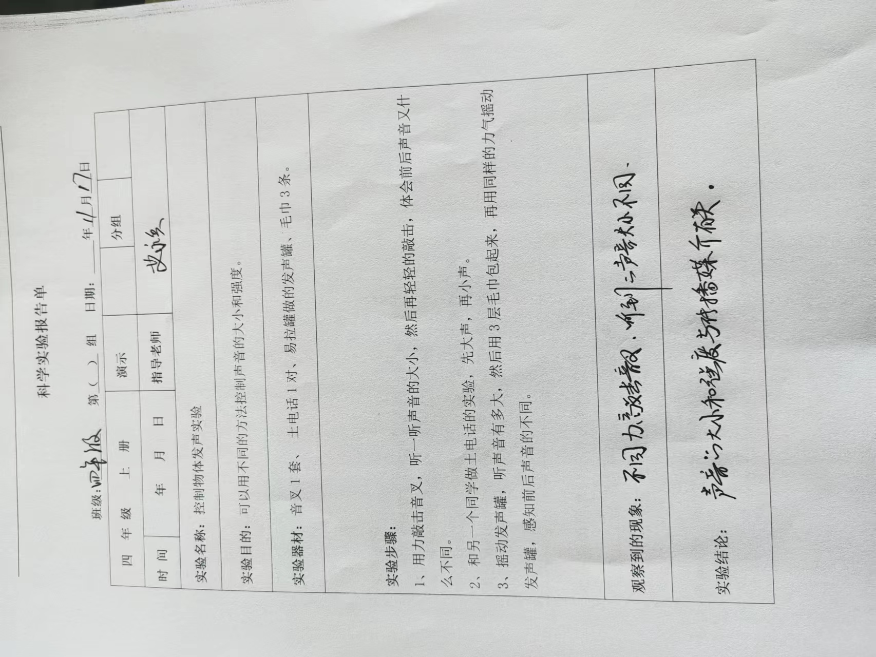 控制物体发声实验