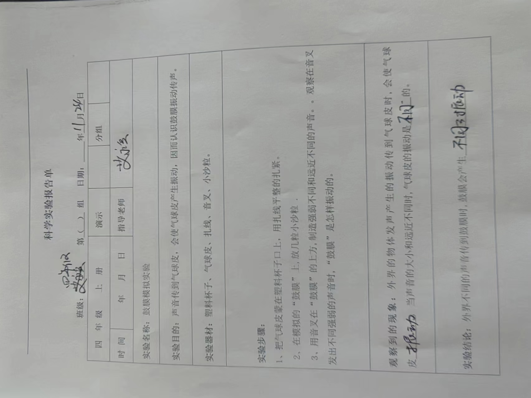 鼓膜模拟实验