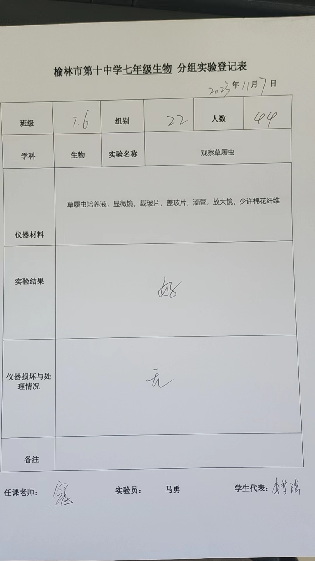实验登记表