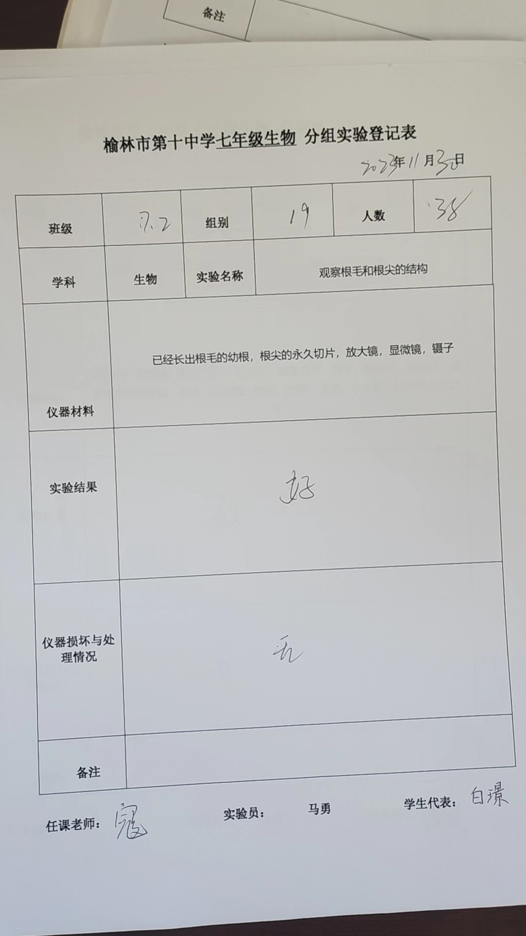 实验登记表