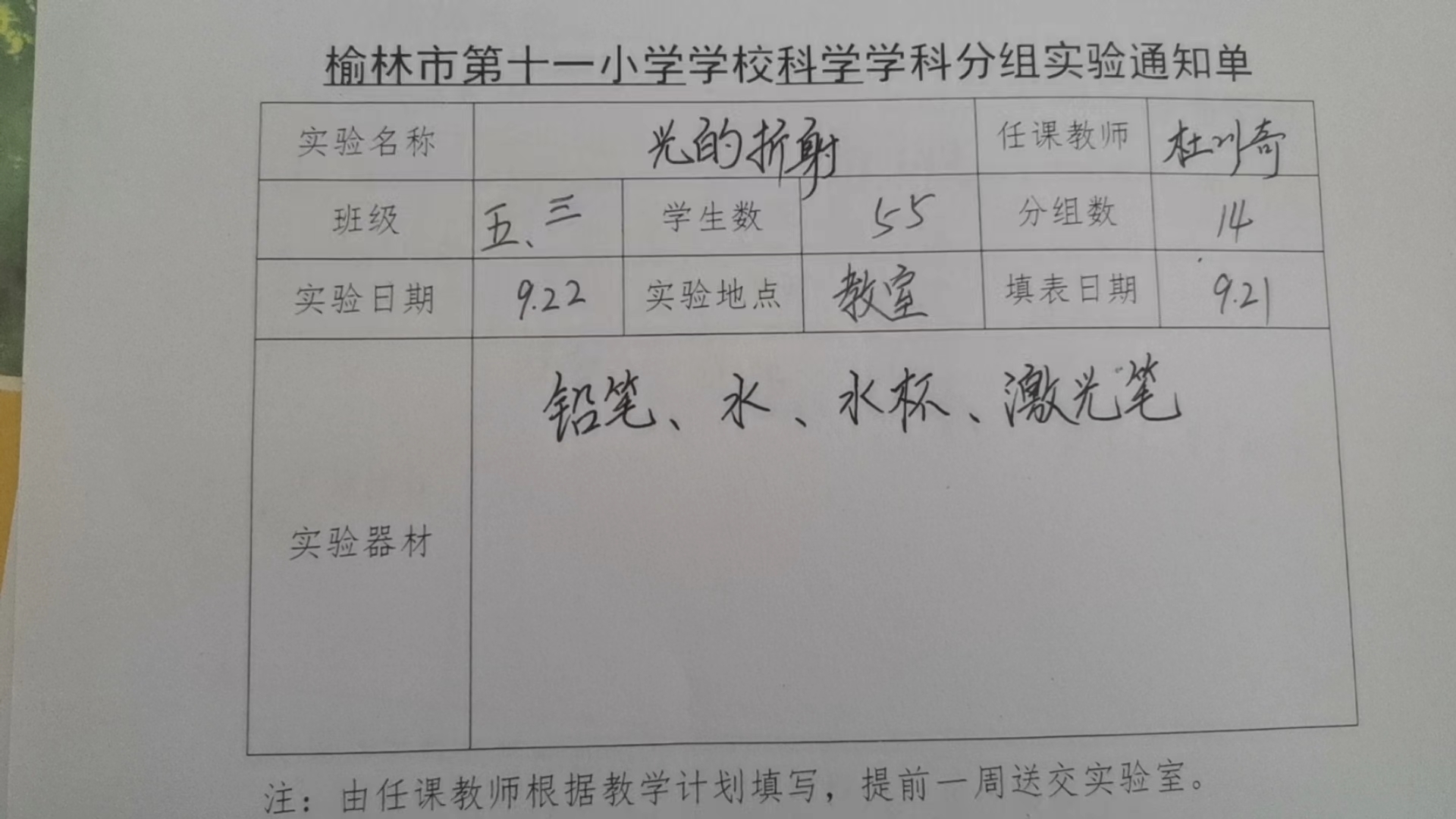实验登记表