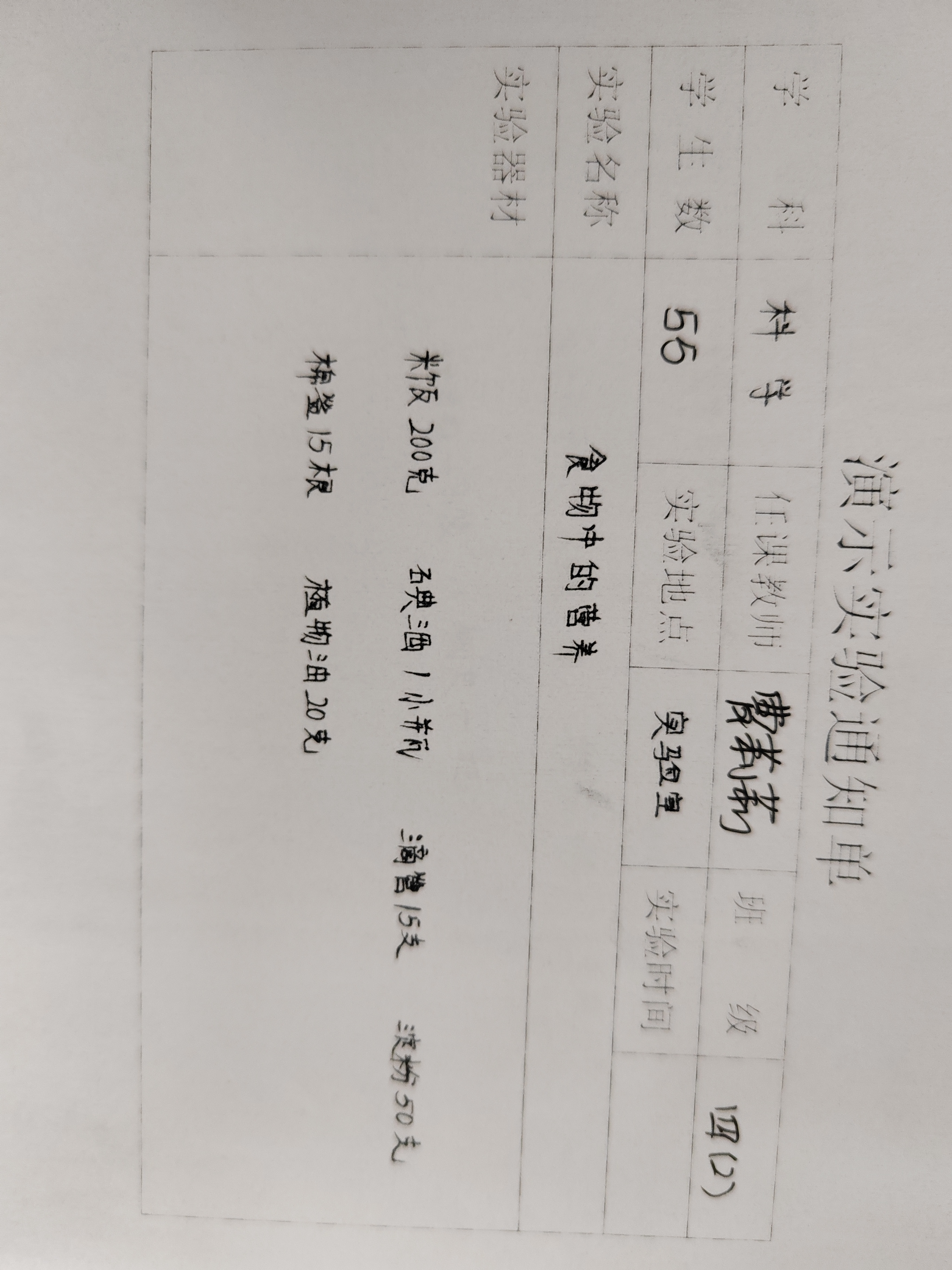实验登记表