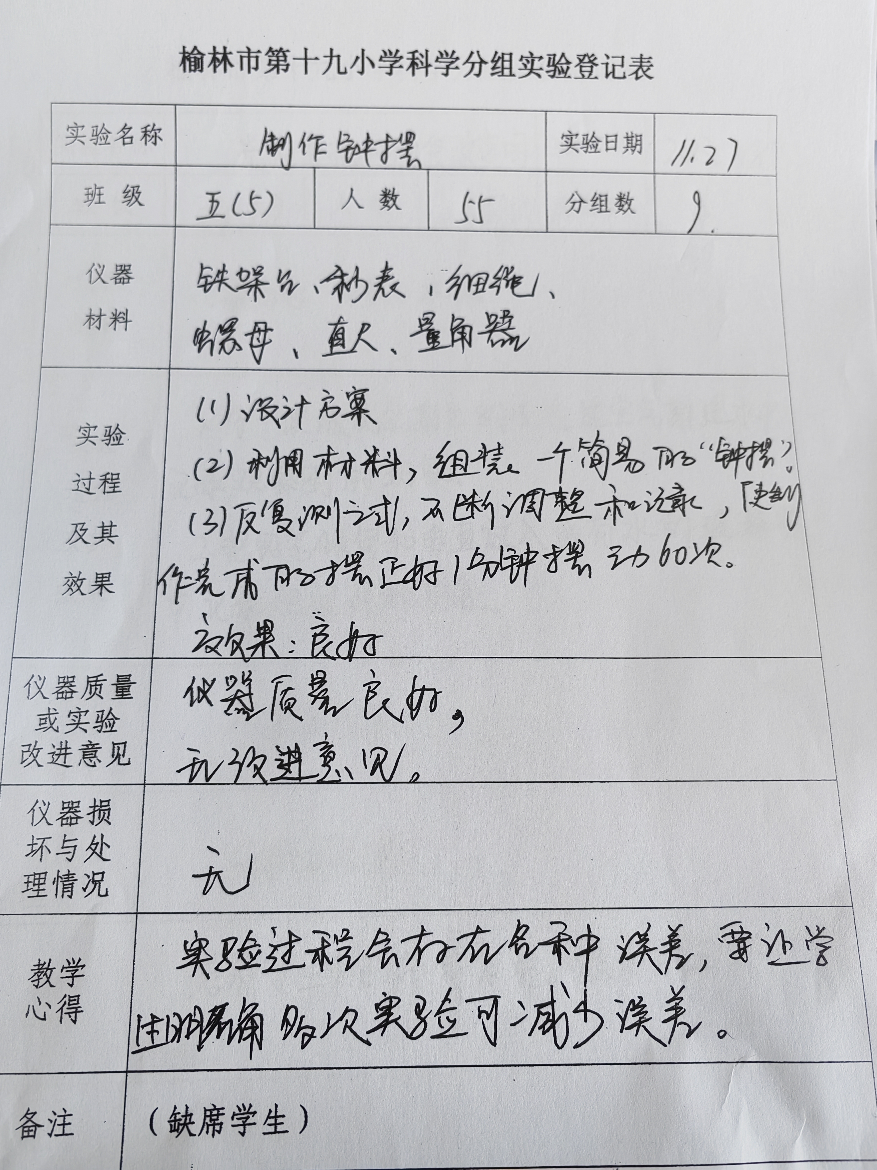 实验登记表