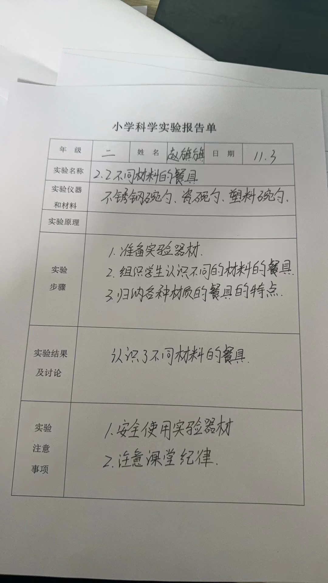 实验登记表