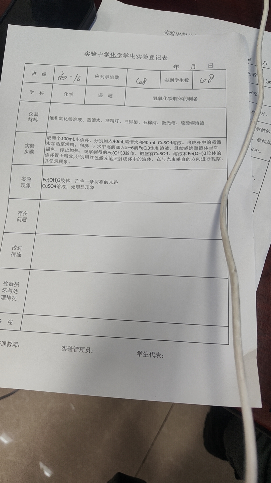 实验登记表