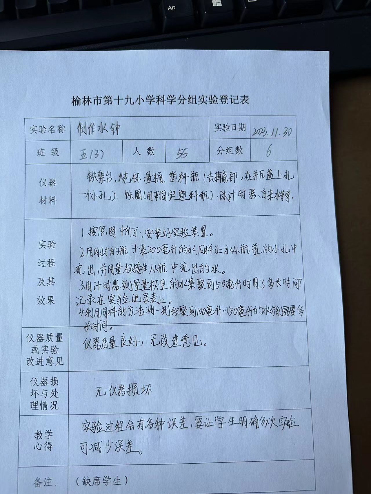 实验登记表