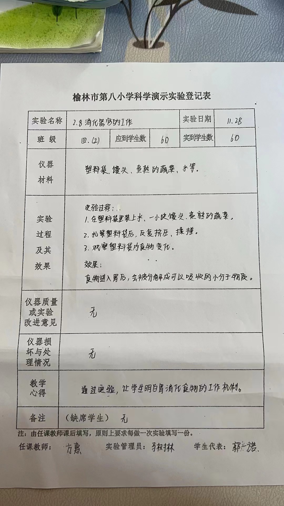实验登记表