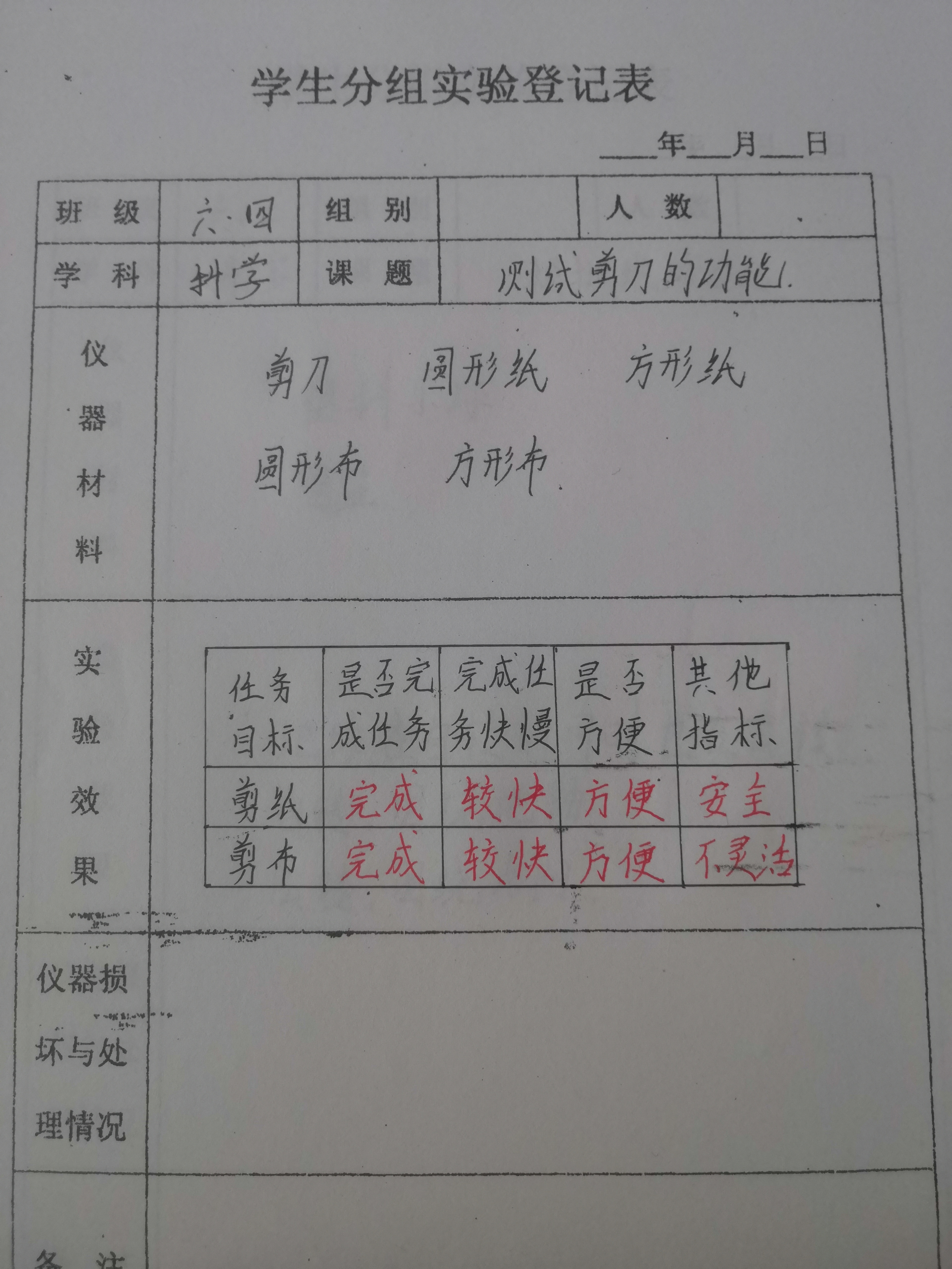 实验登记表