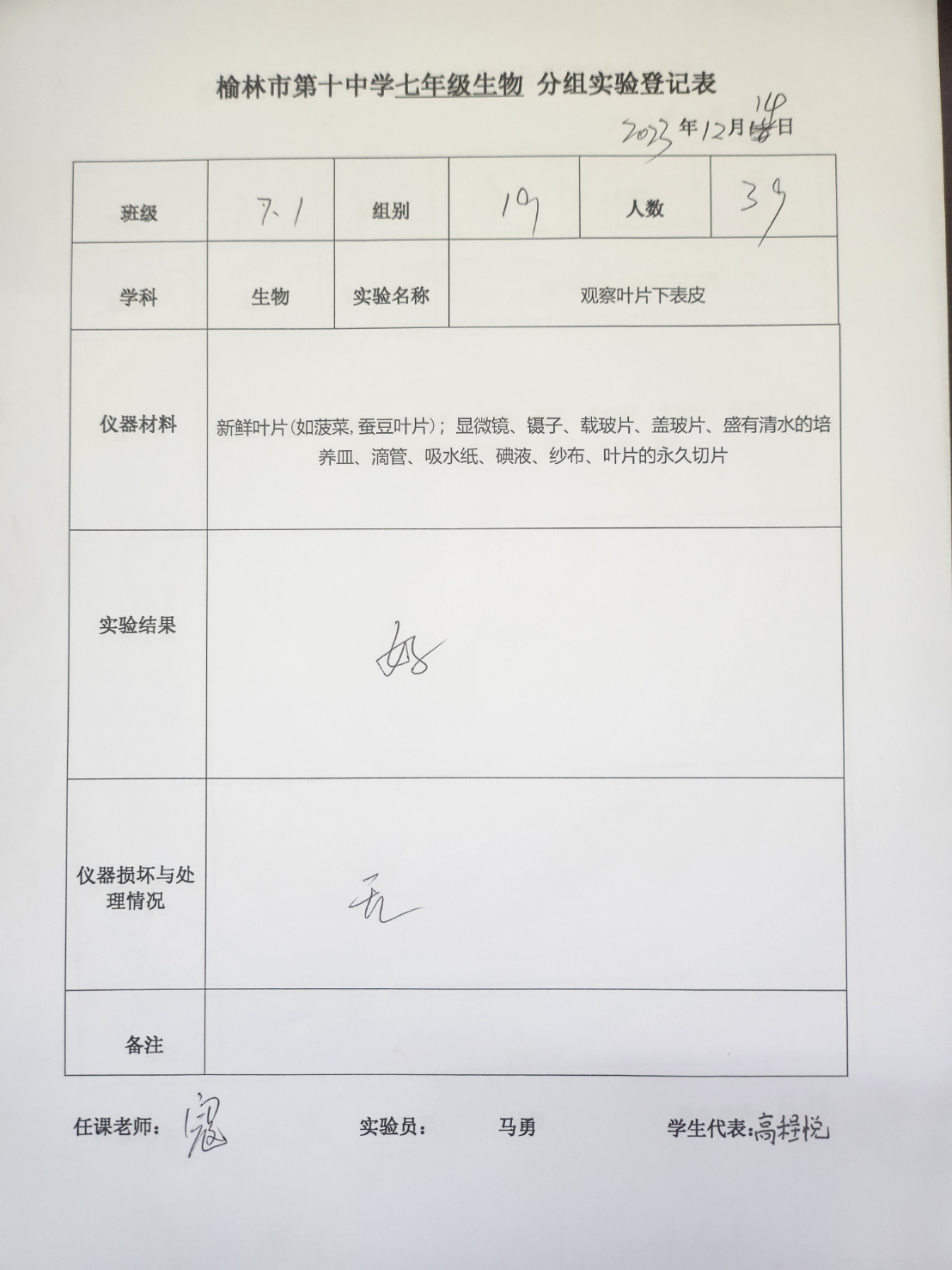 实验登记表