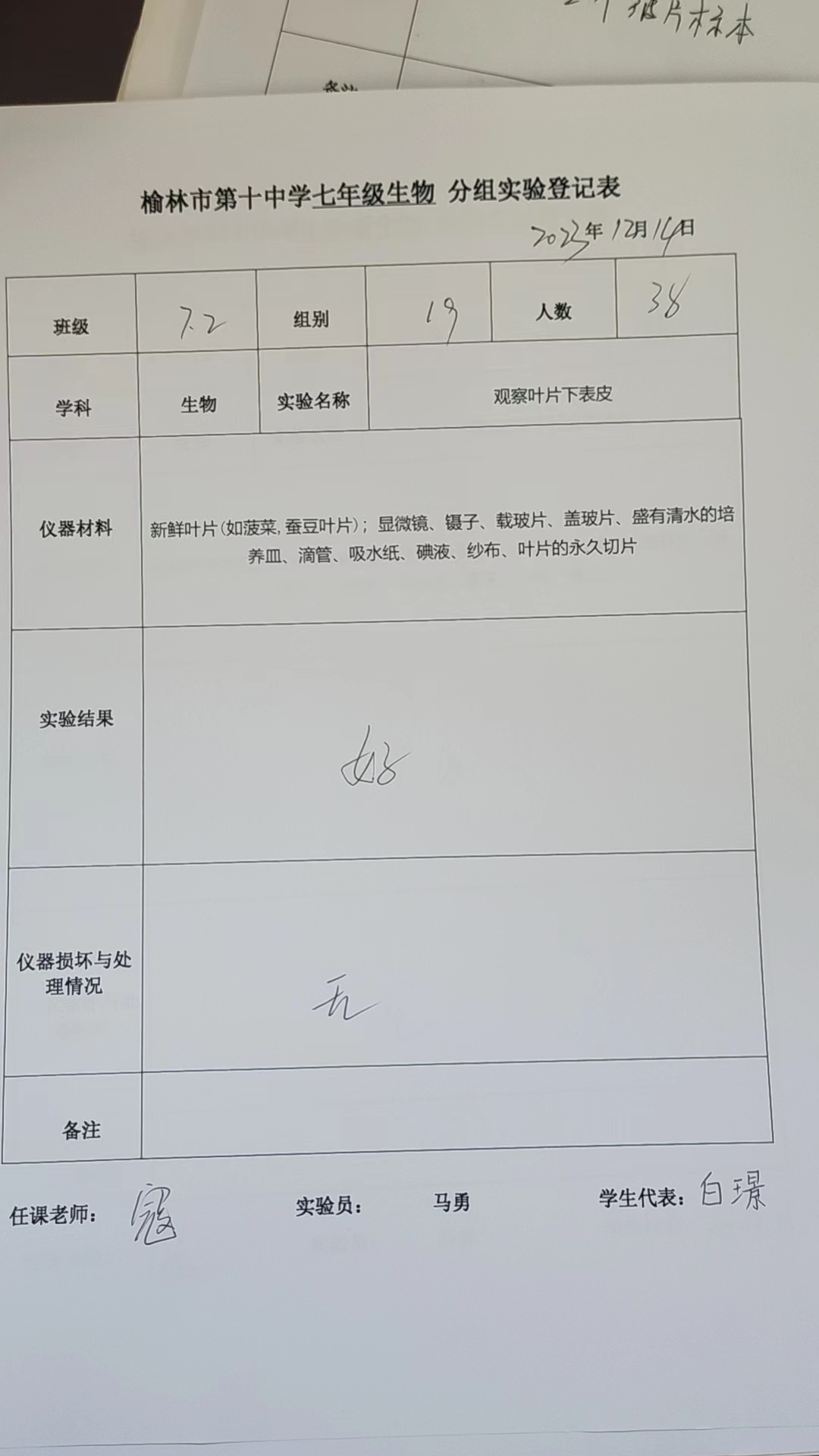 实验登记表