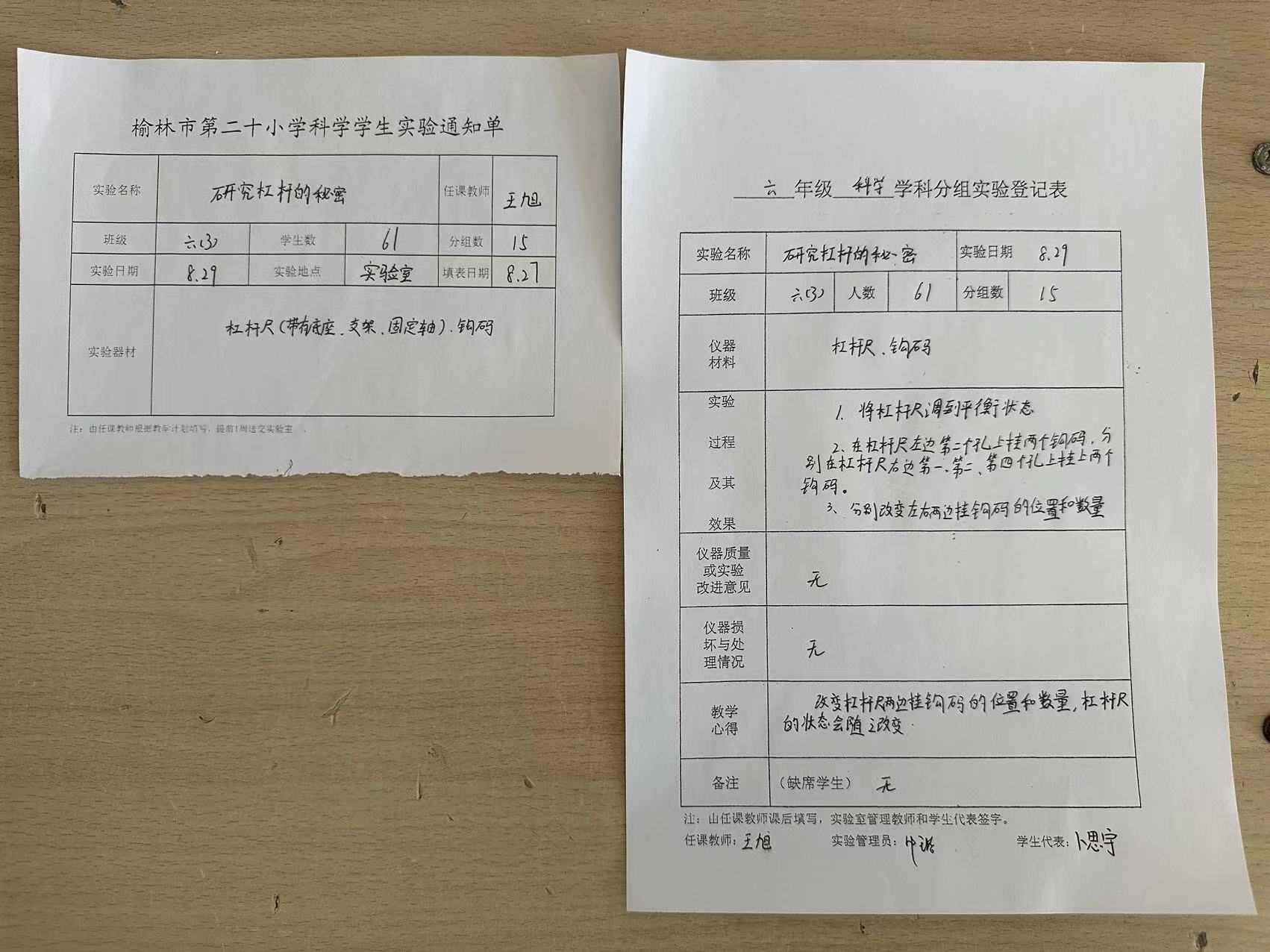 实验登记表