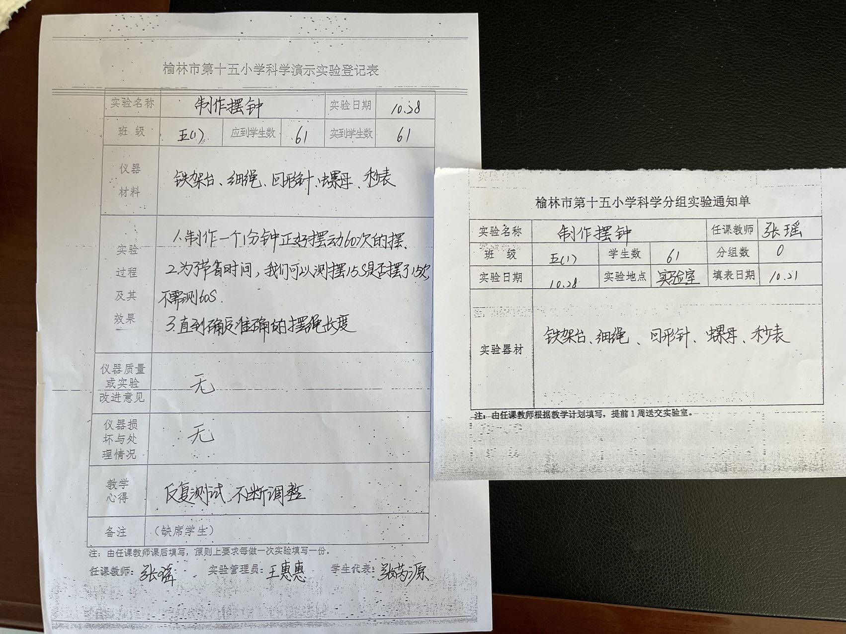 实验登记表