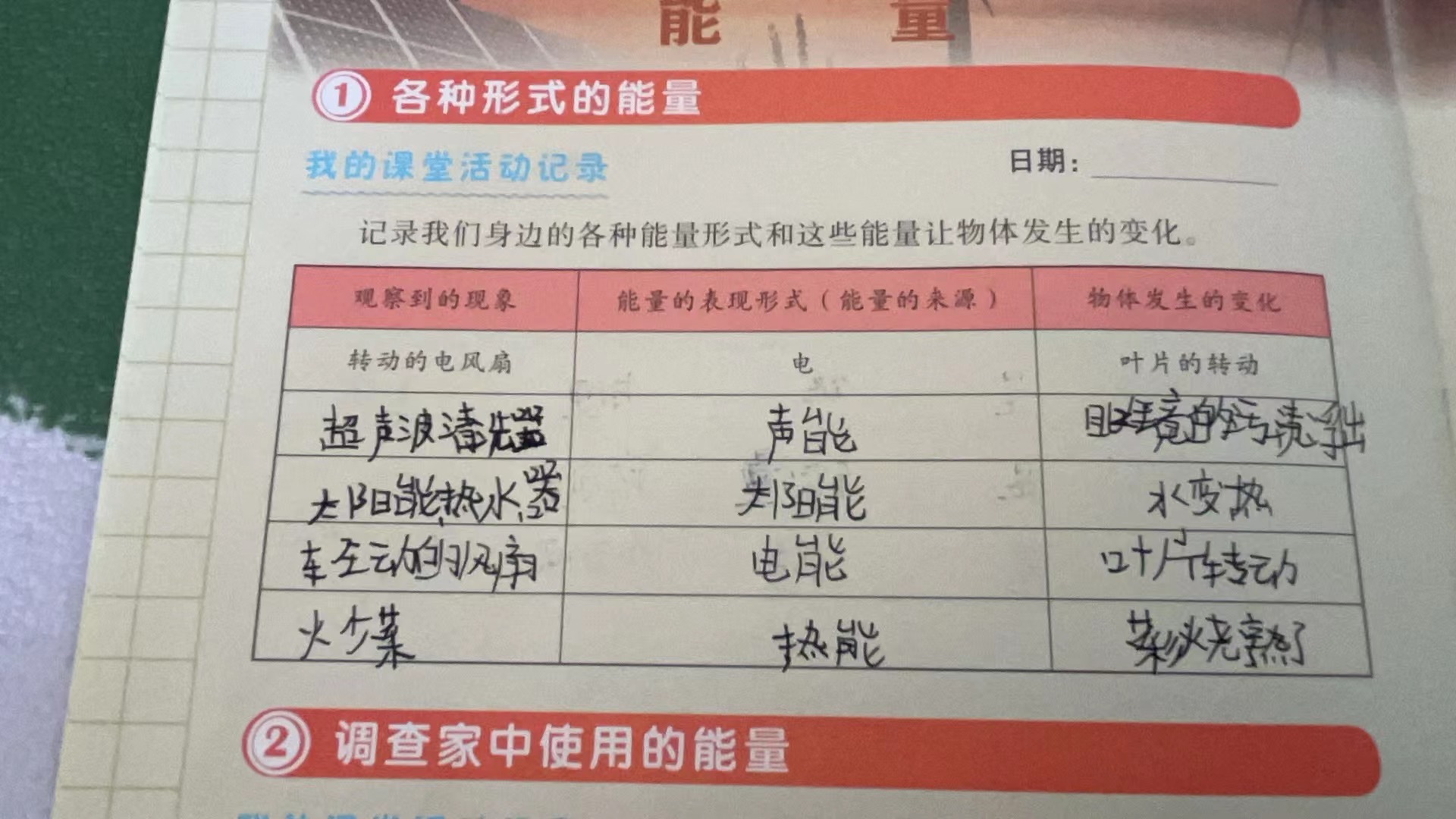 记录能量让物体发生的变化