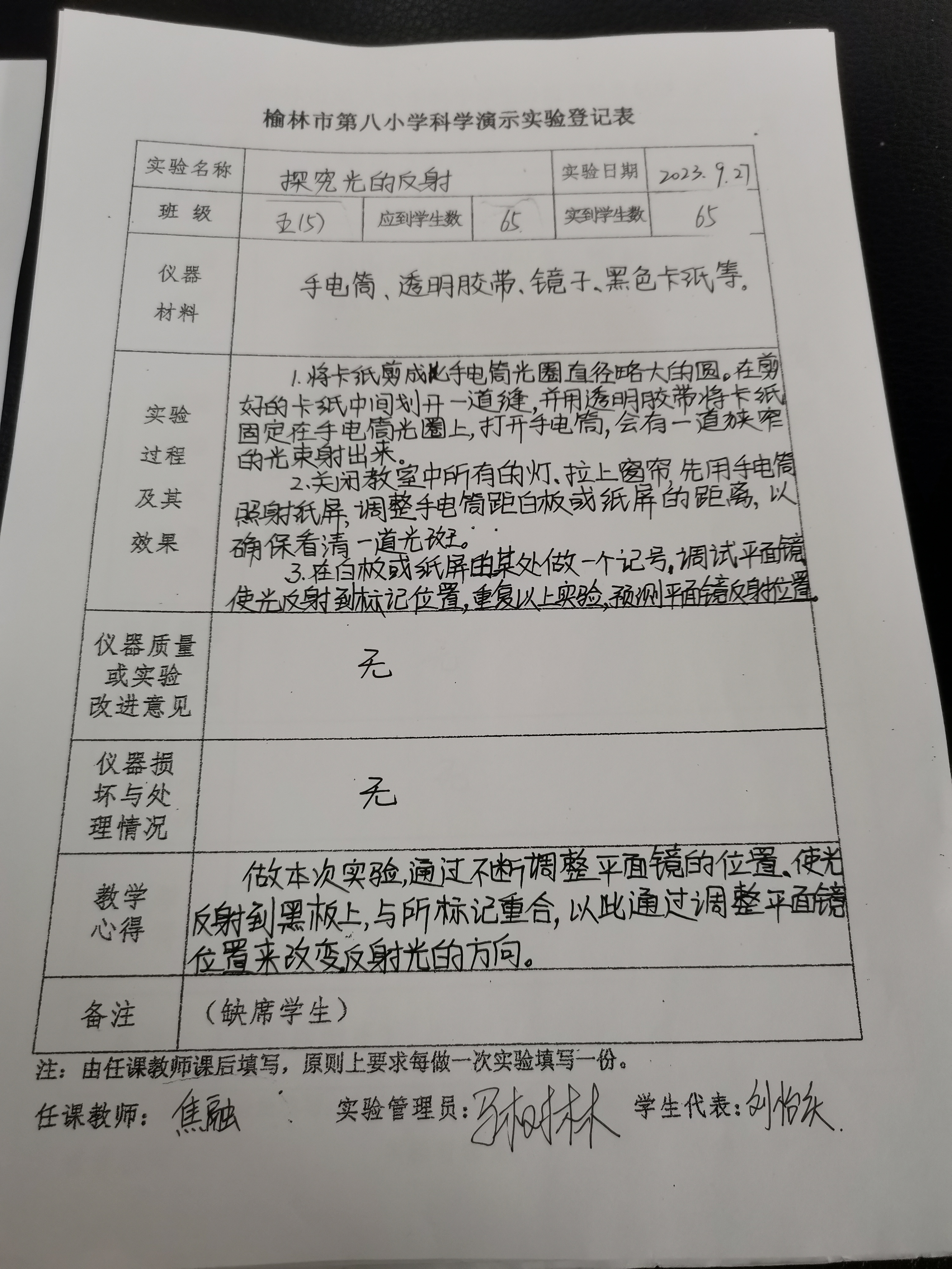 实验登记表