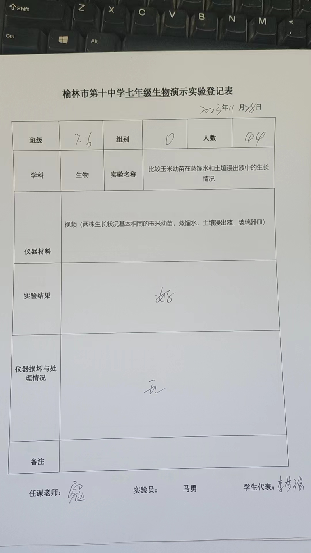实验登记表
