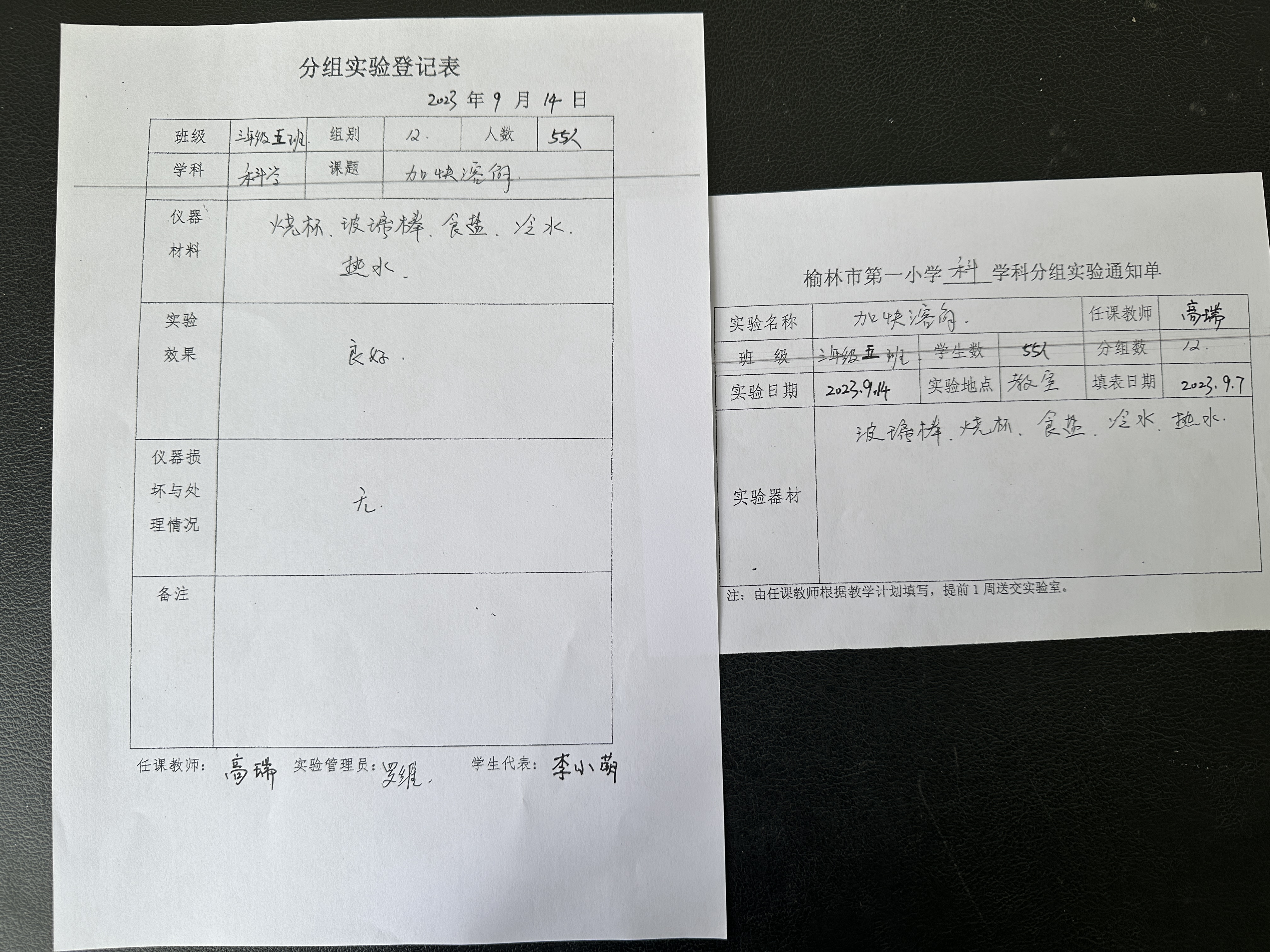 实验登记表