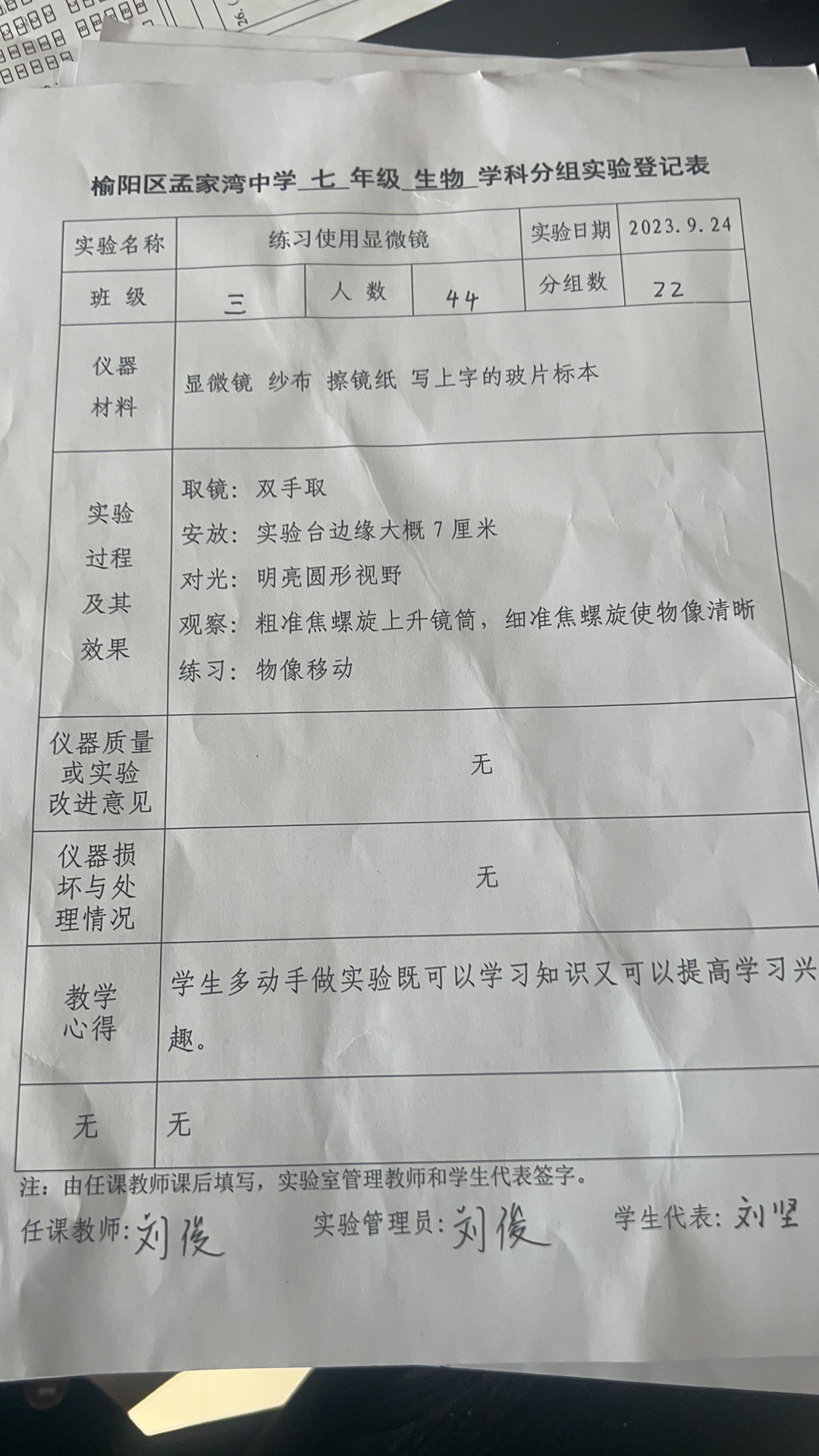 实验登记表