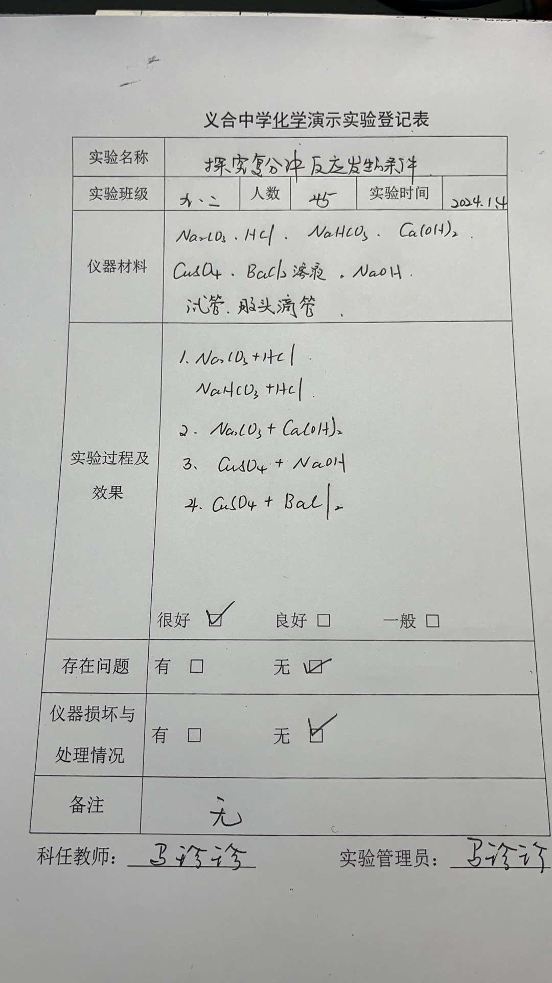 实验登记表