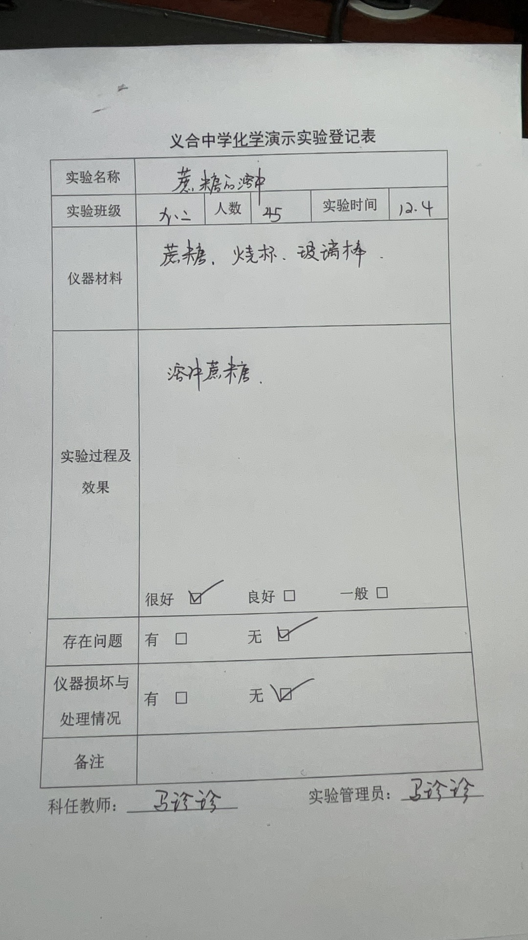 实验登记表