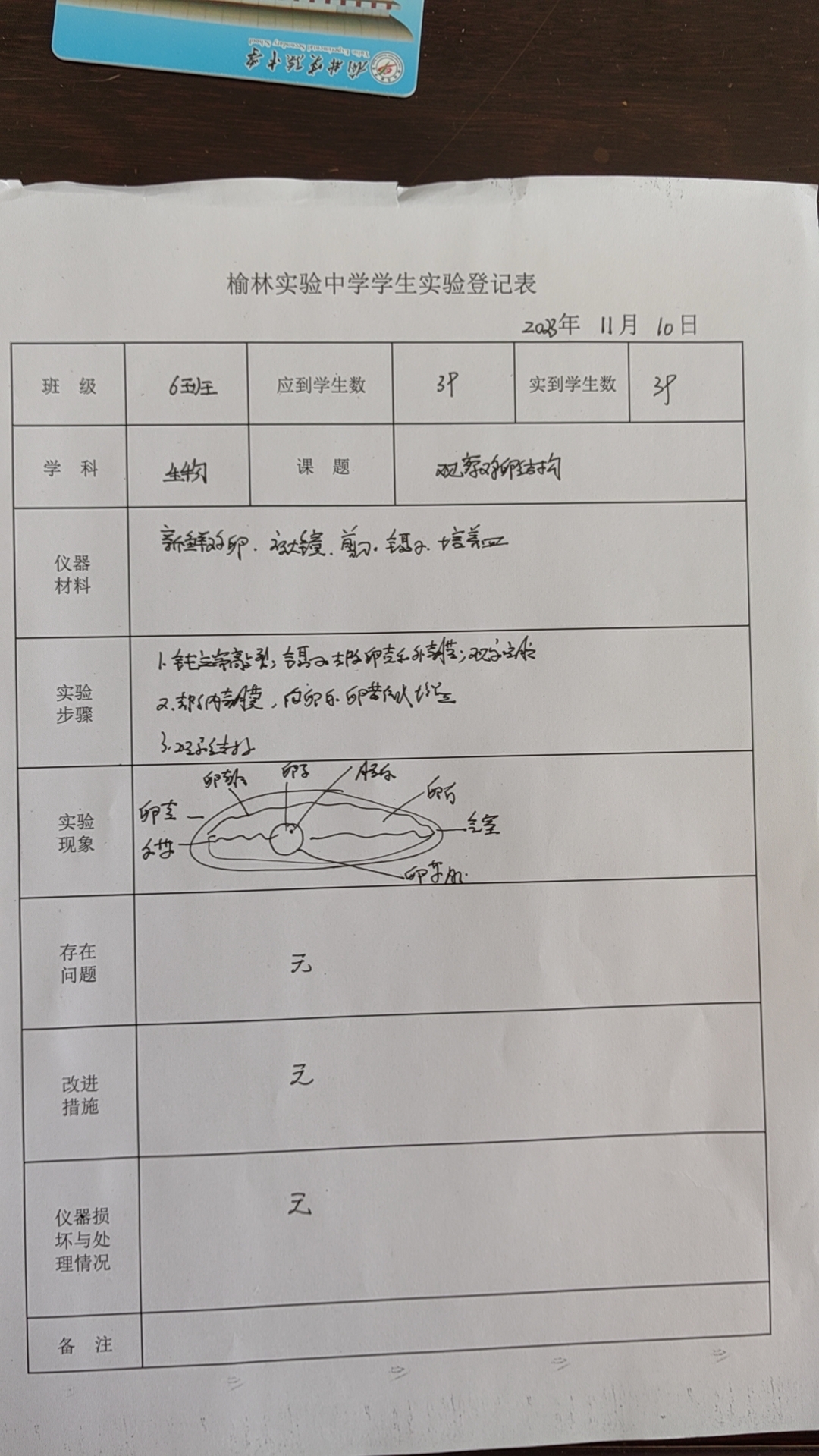 实验登记表