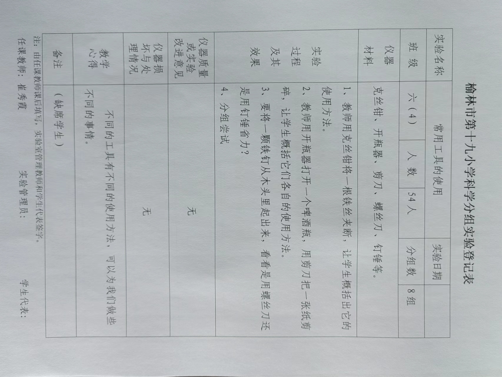 实验登记表