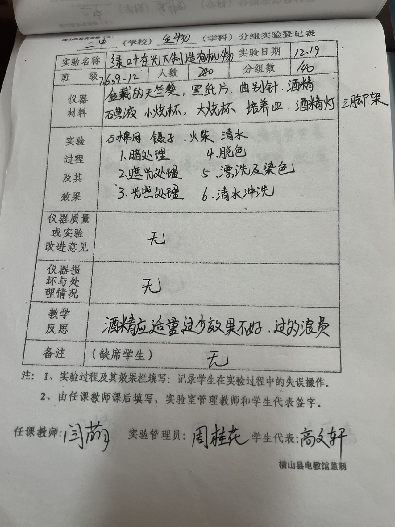 实验登记表