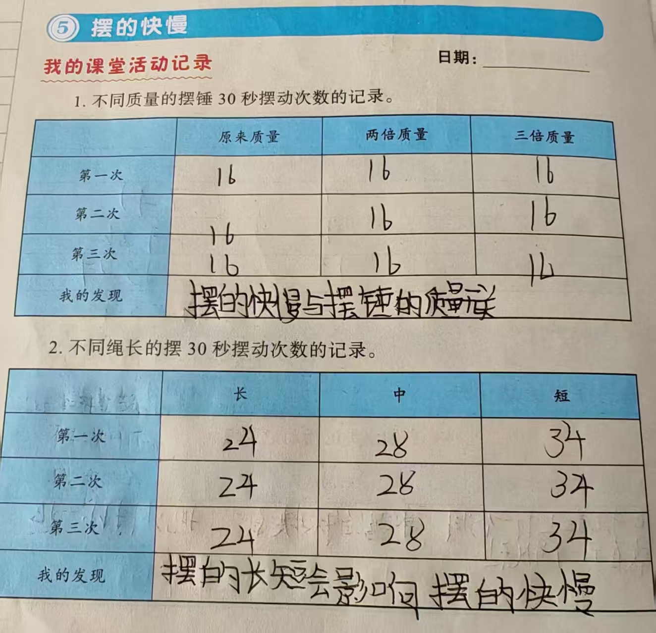 摆的快慢
