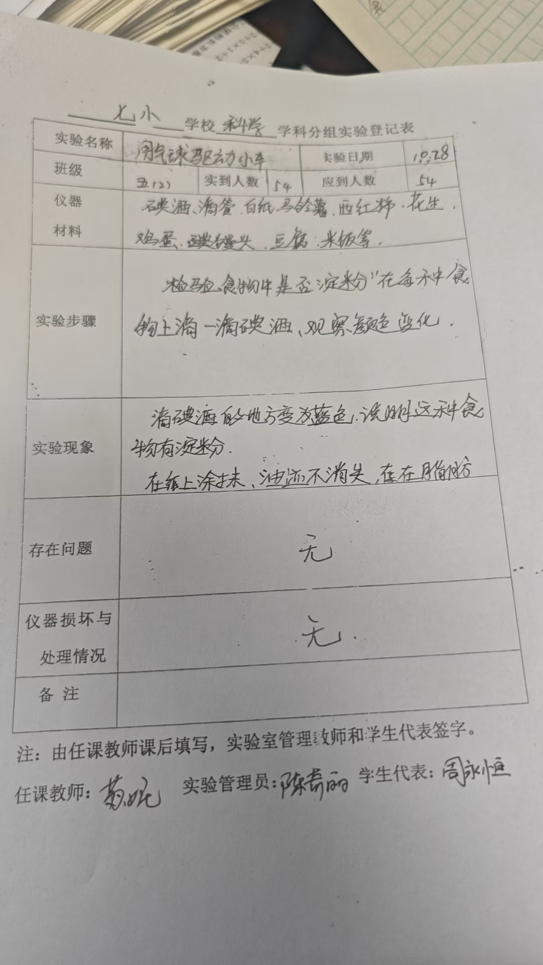 实验登记表