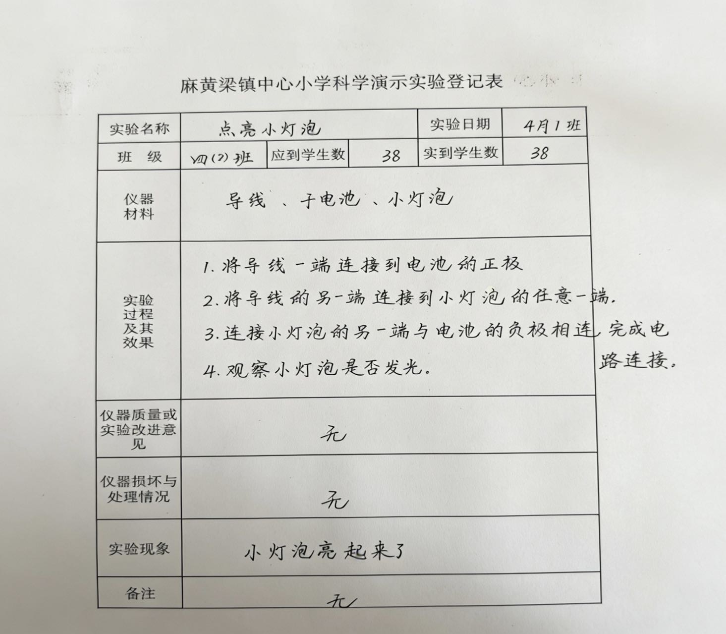 实验登记表
