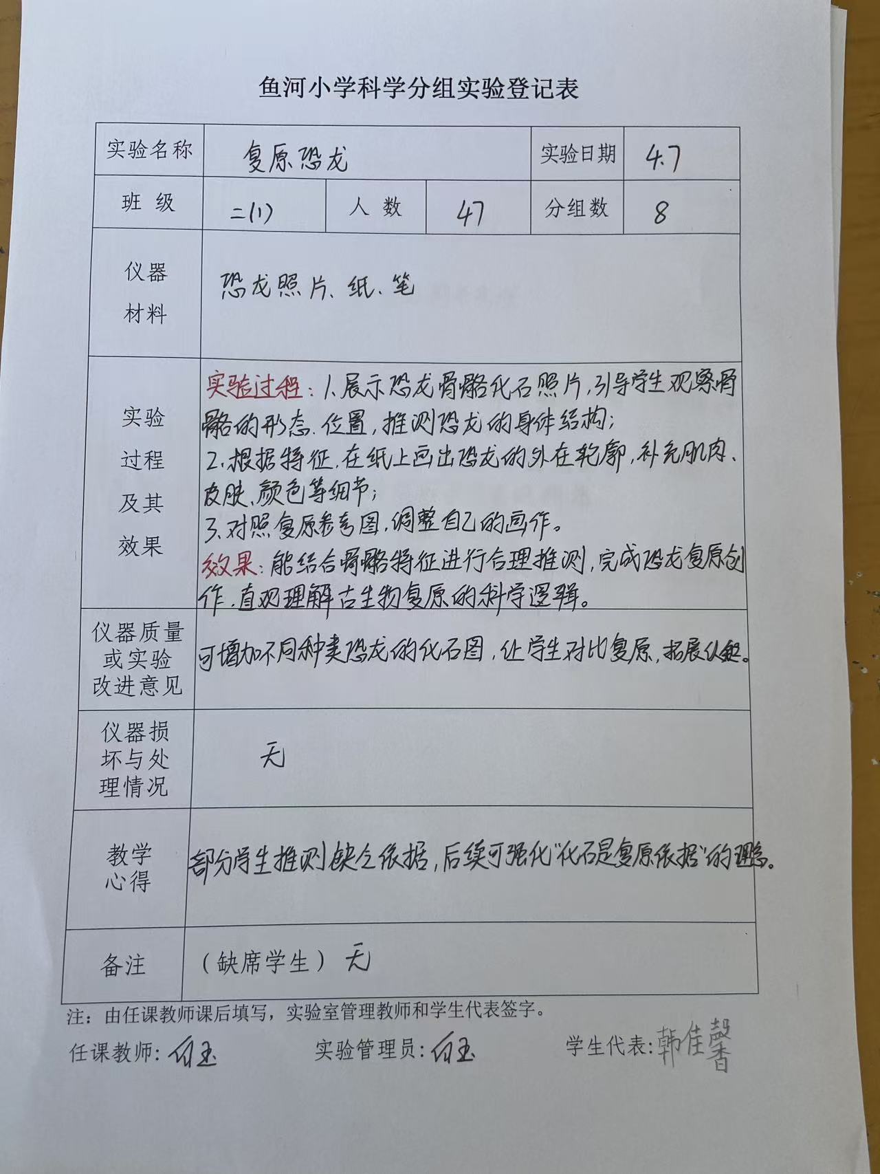 实验登记表