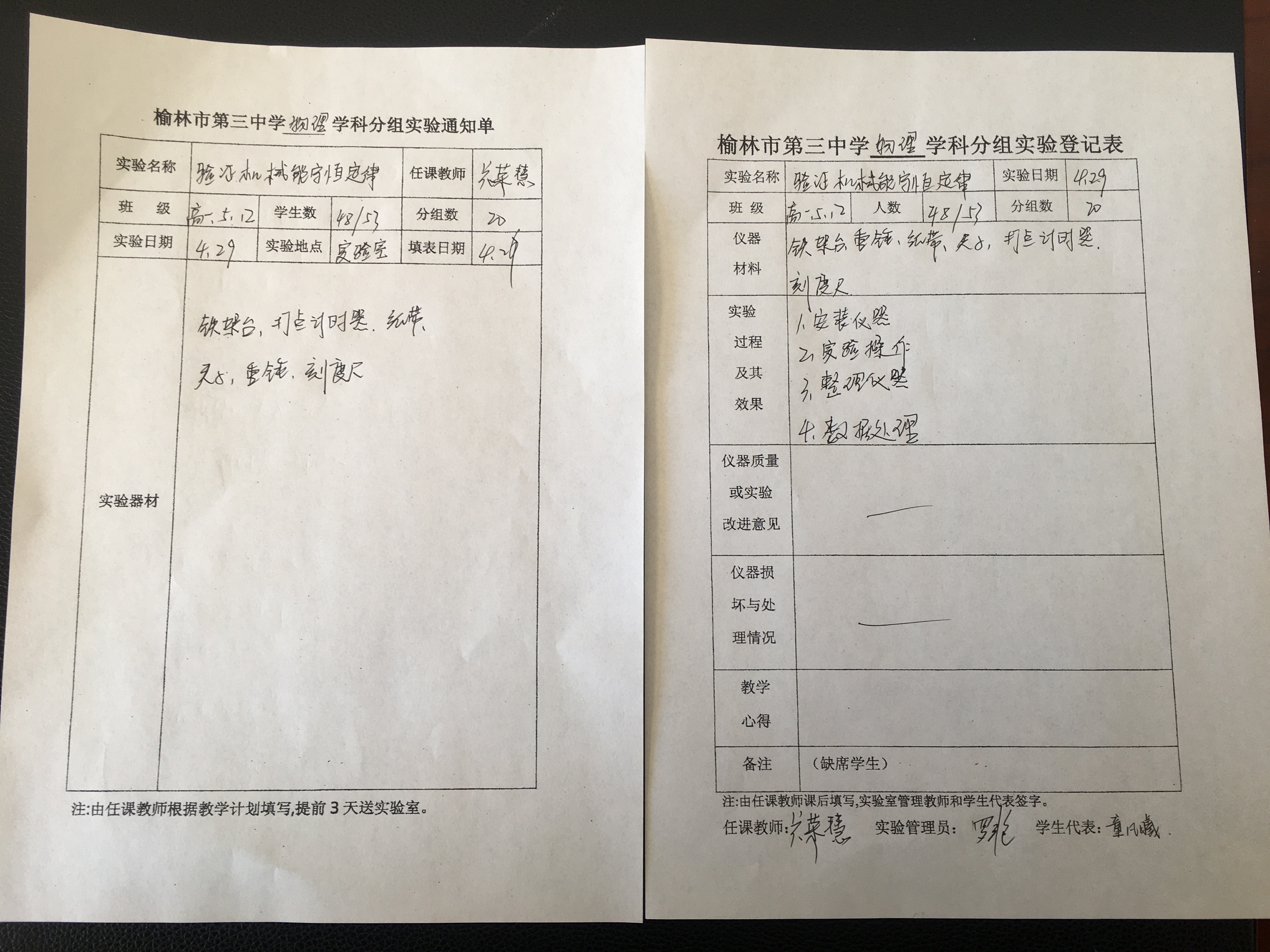 实验登记表
