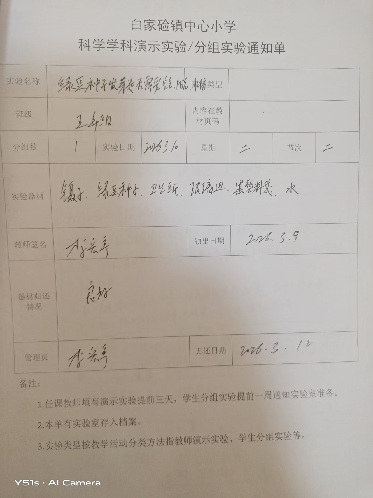 实验登记表