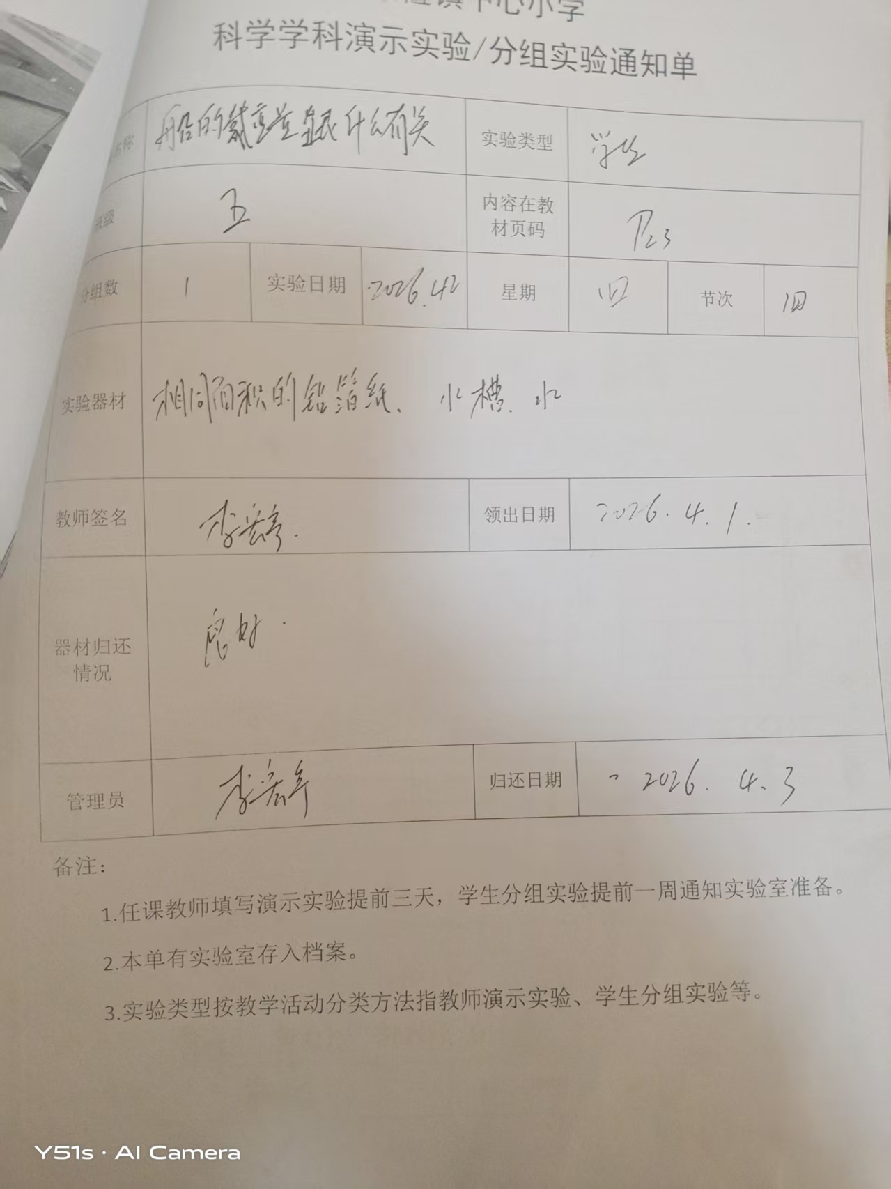 实验登记表