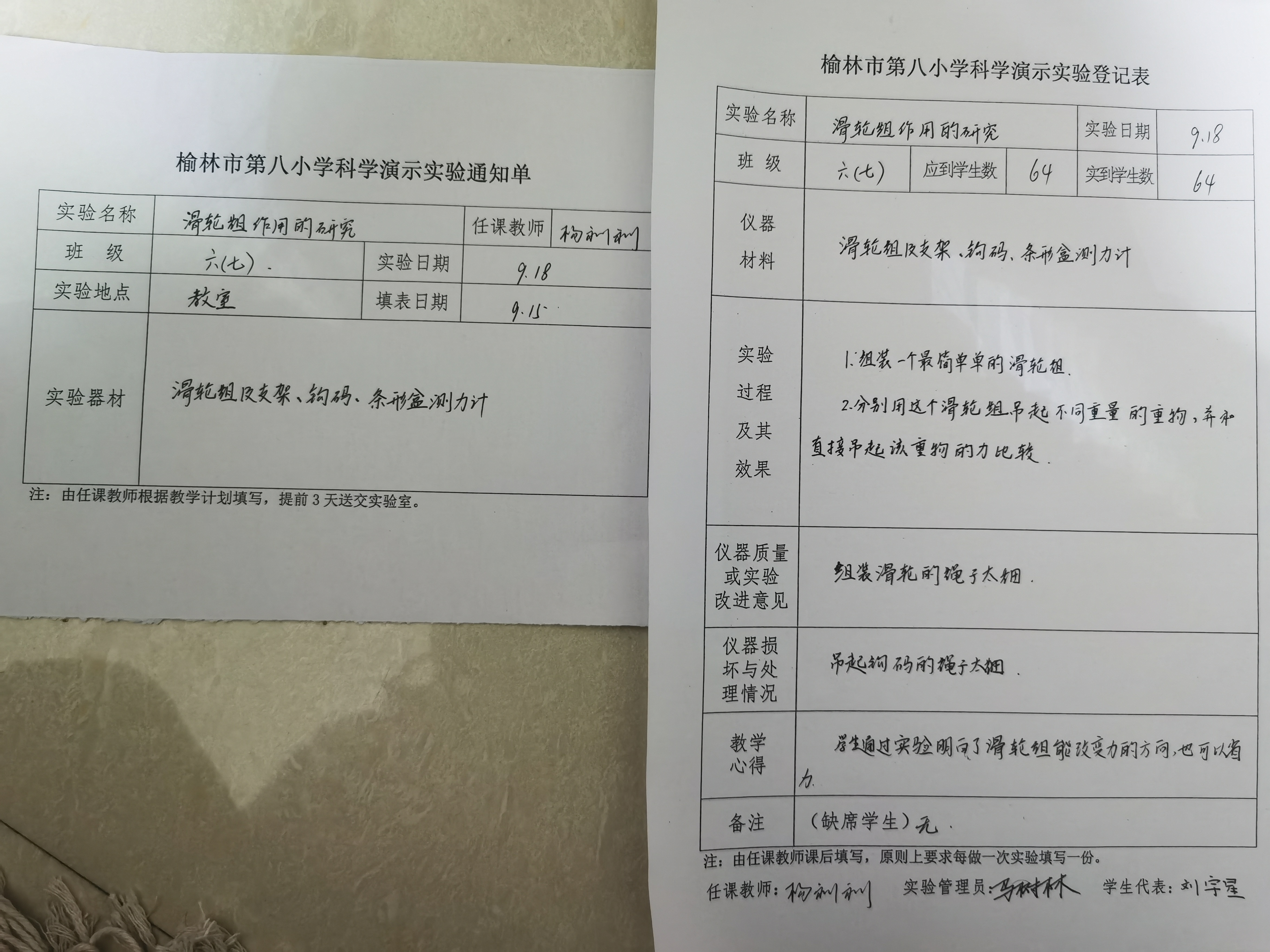 实验登记表