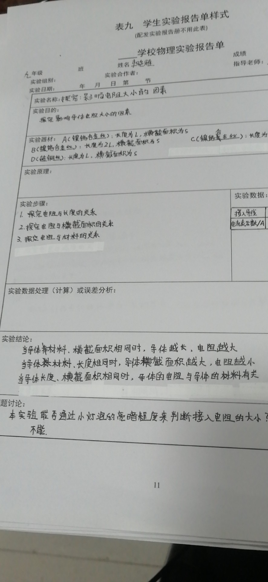 探究影响导体电阻大小的因素