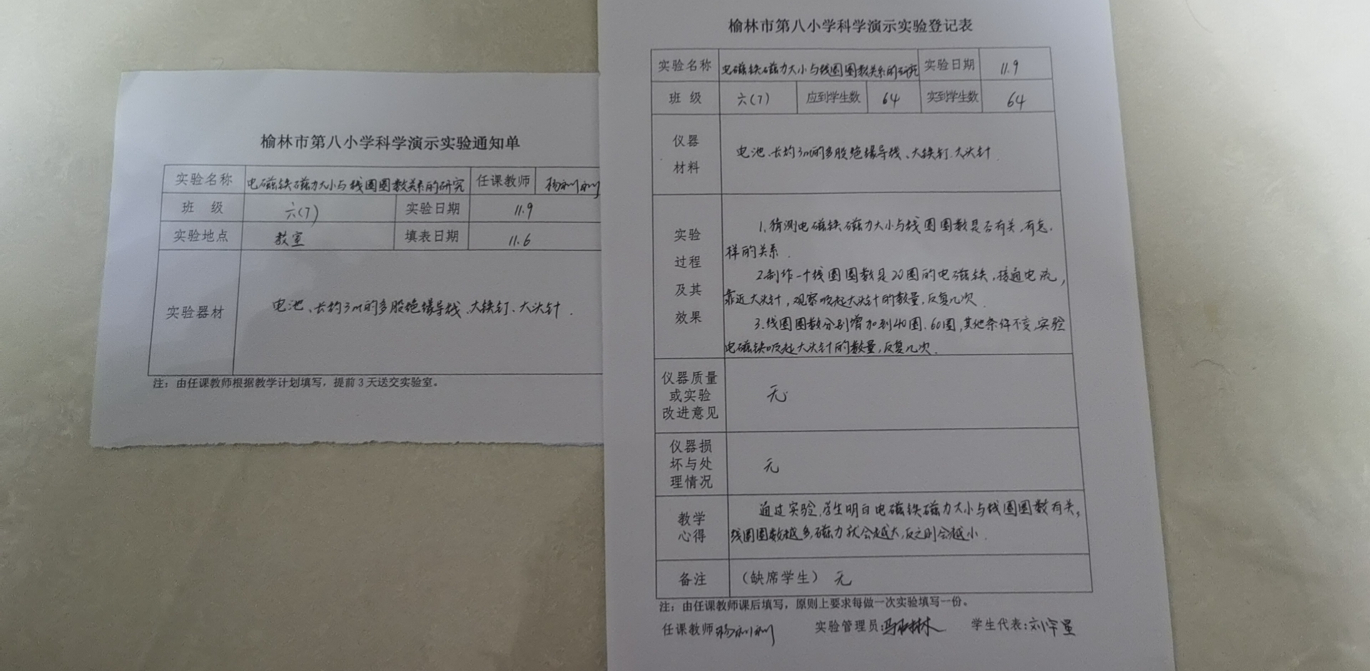 实验登记表
