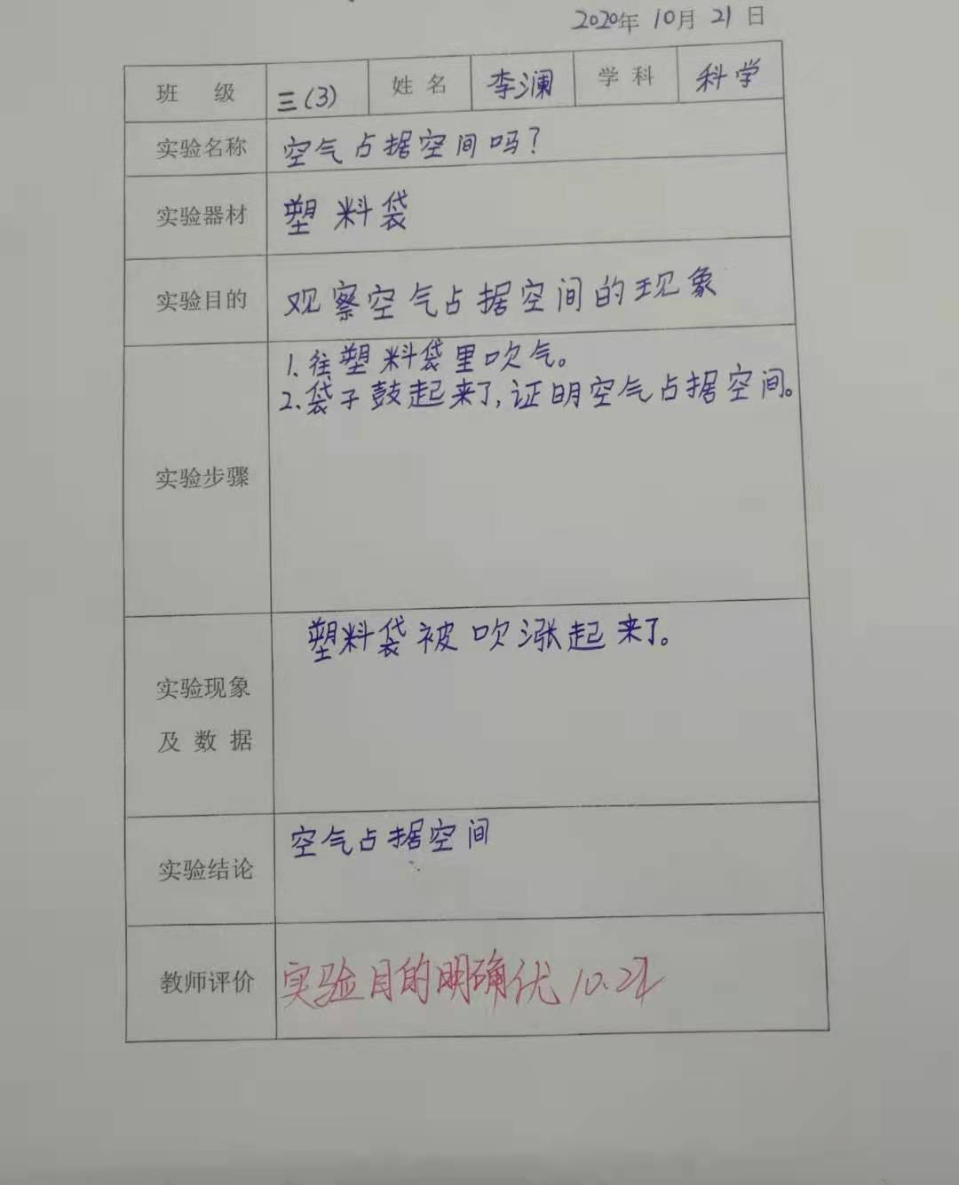 空气占据空间吗