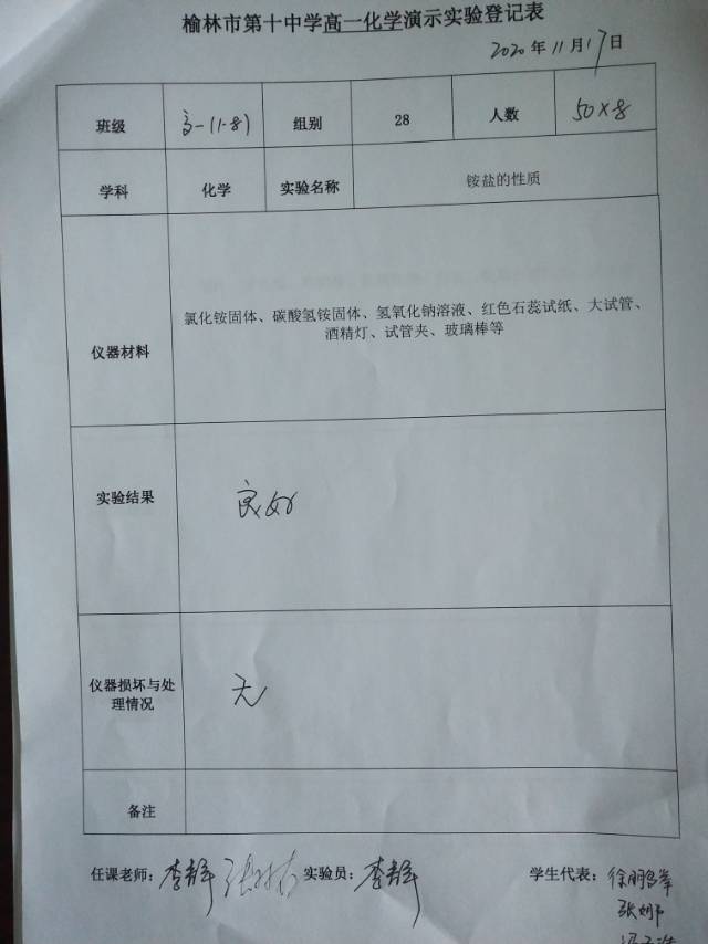 实验登记表