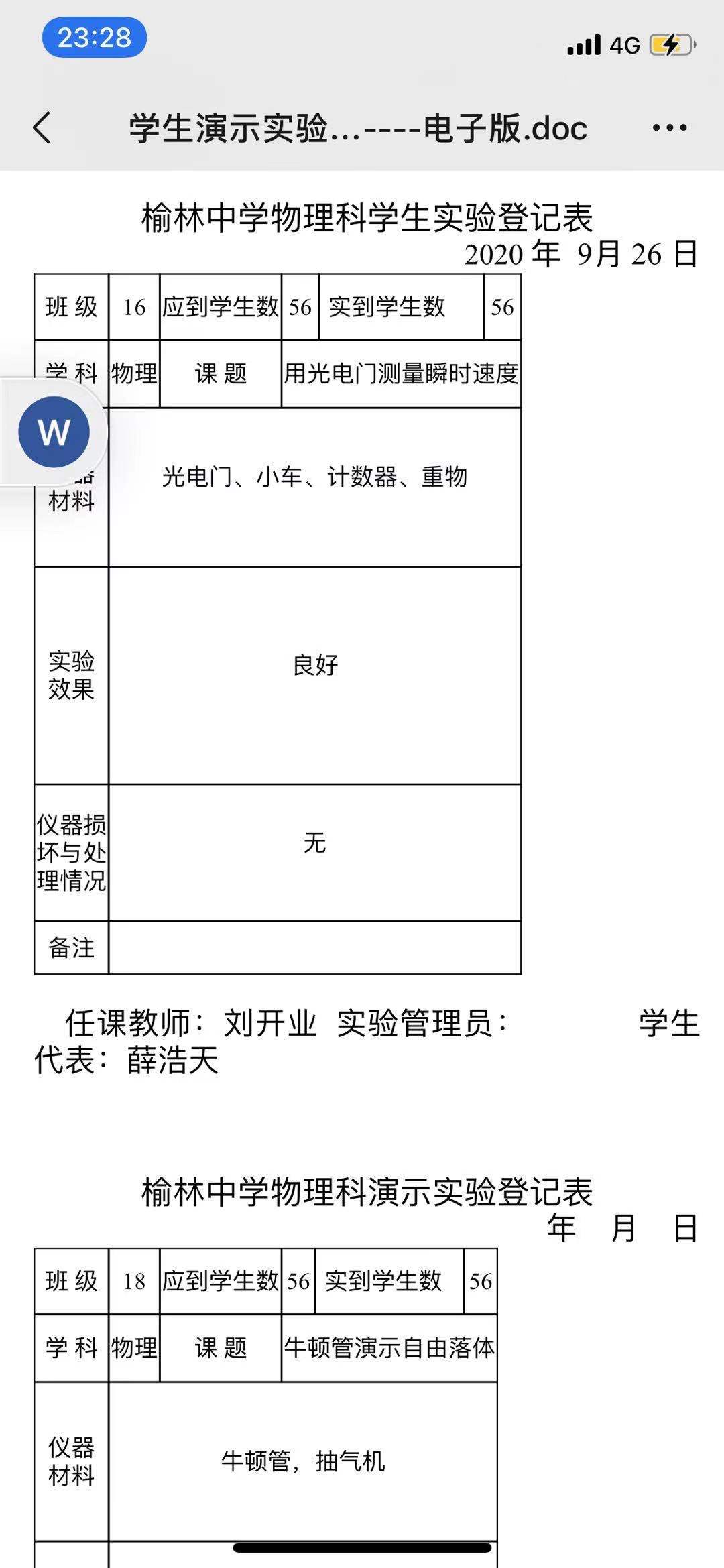 实验登记表