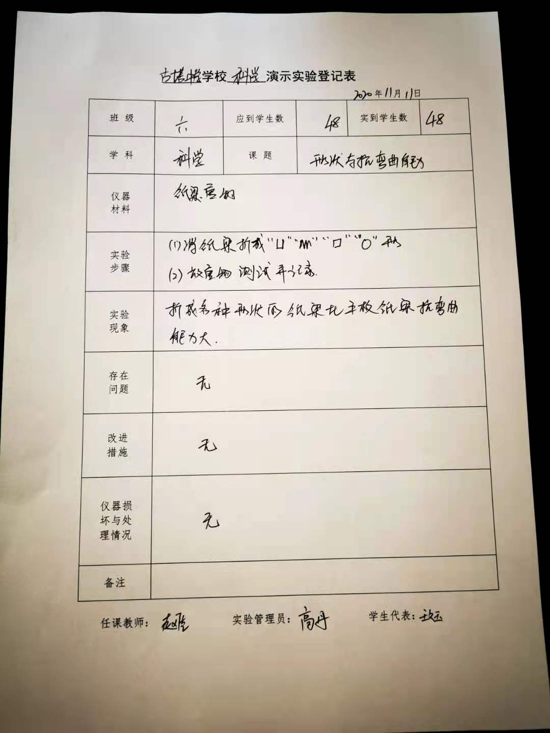 实验登记表