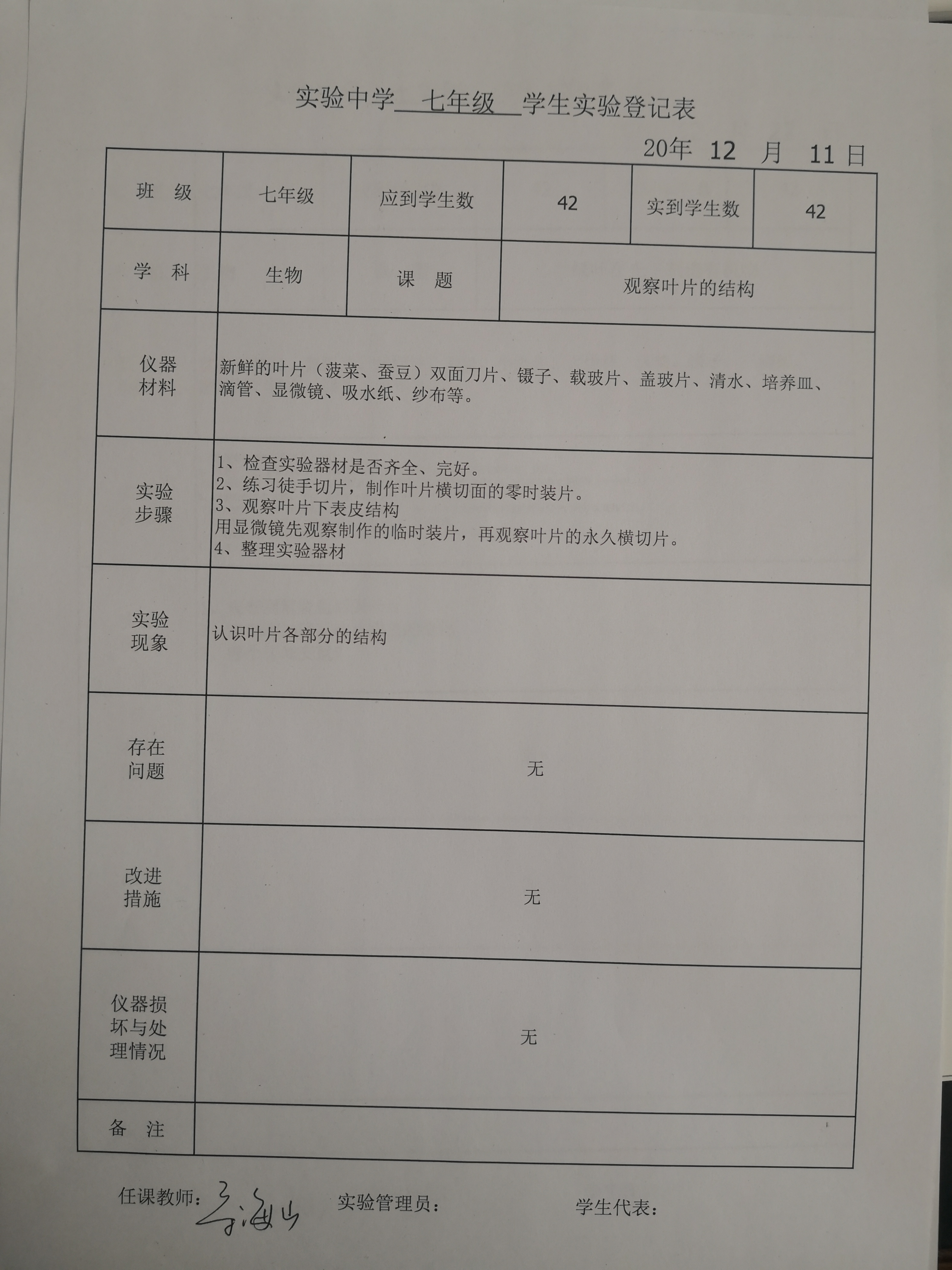 实验登记表