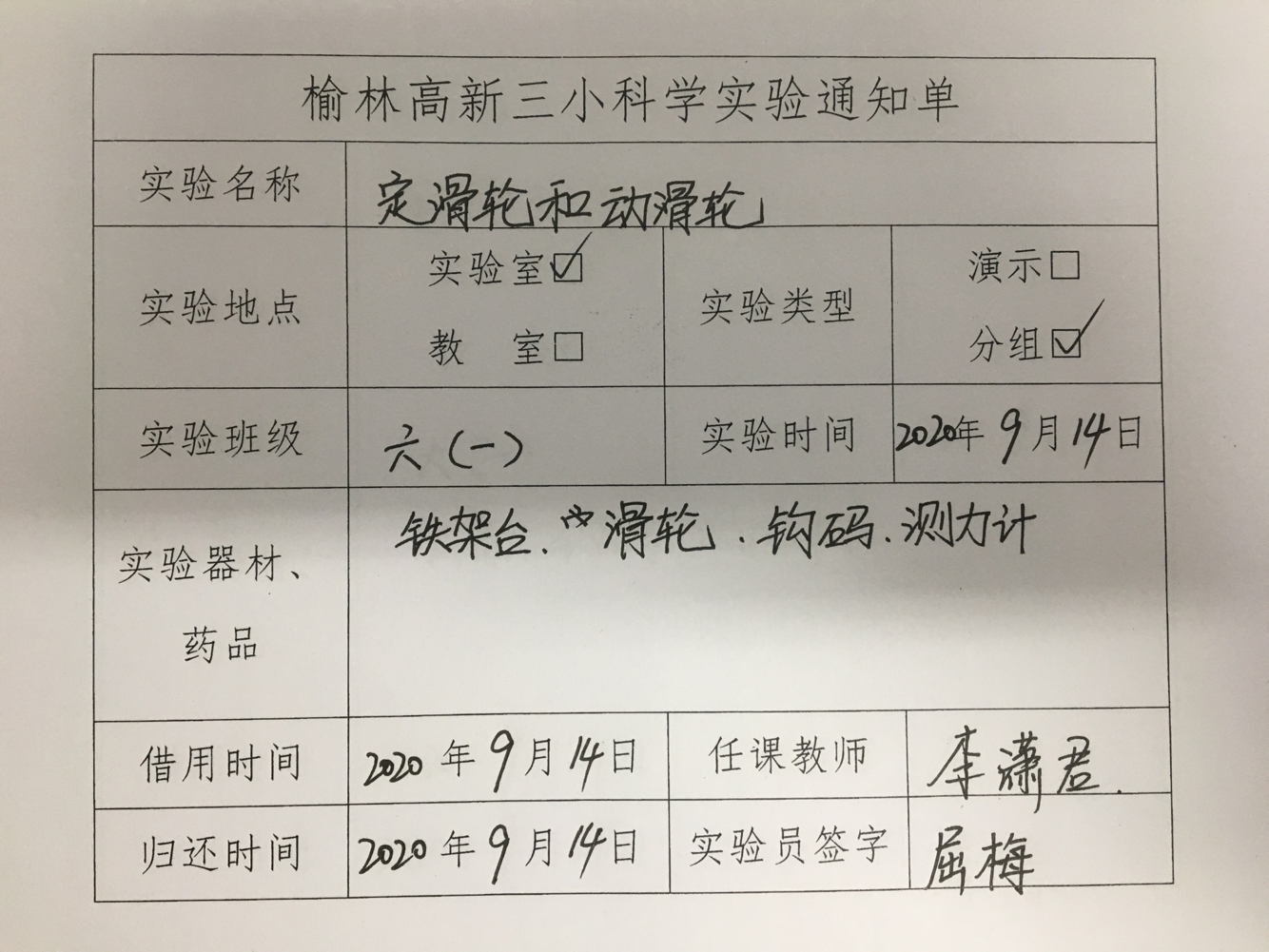 实验登记表